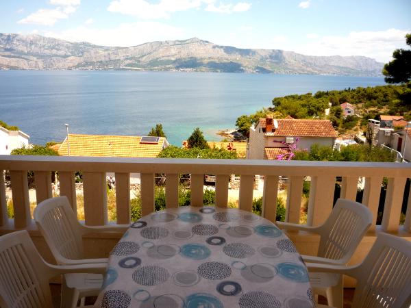 Smješten na super lokaciji iznad popularne šljunčane i stijenovite plaže. Samo 3 minuta hodanja do plaže, 10-15 minuta hoda do centra, 150 m do najbliže trgovine. . Novo je izgrađeni, moderni dobro opremljeni apartman sa prekrasnim pogledom na more i panoramu. Smješten iznad popularne plaže na mirnom i tihom turističkom mjestu POSTIRA na otoku BRAČU. Povezan je svakodnevnim trajektnim linijama sa gradom Splitom. Udaljen 9 kilometara (15 minuta vožnje) od trajektne luke u Supetru na O. Braču. Luksuzno je opremljen. Ima KLIMU, INTERNET, tv satelit, perilicu suđa, perilicu rublja, aparat za kavu. Nudi se mogučnost upotrebe roštilja, a parking mjesto za gosta nalazi se u dvorištu kuće. U konfornom apartmanu nudi se mogučnost smještaja za 4 odrasle osobe i 2 djece. Ima dvije dvokrevetne sobe, a pomoćni krevet se nalazi u dnevnoj sobi i dodatno se naplaćuje. Kućni ljubimci nisu dozvoljeni.