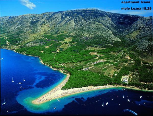 Turistička pristojba nije uključena u cijenu.Kristalno čisto more idealno je za kupanje i ronjenje. U blizini apartmana nalazi se plaža Molo Lozna u sklopu koje je mali kafić, mogu se iznajmiti ležaljke. 3 kilometa udaljeno nalazi se i pješčana plaža LOVREČINA, te atraktivna plaža ZLATNI RAT u Bolu jedna od najljepših na Jadranu. U blizini apartmana postoji više plaža koje su okružene sa borovom šumom, maslinama. . Pogodno je za pješačenje, opušanje, a atmosfera je vrlo prijateljska. Možete iznajmiti brod ili otići na izlet sa organiziranim brodom do susjednog otoka Hvara, Omiša i rijeke Cetine za Rafting, do grada Splita, Trogira, Solina, Dubrovnika, Lovrečine, interesantnih povijesnim i kulturnim sadržajem. Idealno mjesto za odmor i rekreaciju. DOBRO DOŠLI!