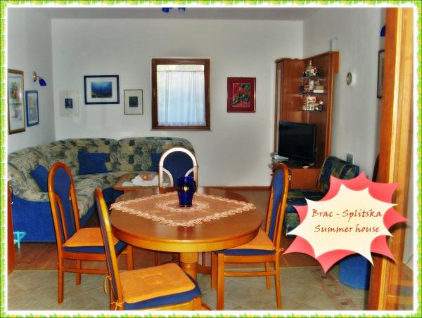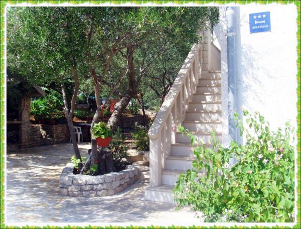 Apartmani se nalaze u malom mjestu Splitska, u blizini Postira. Kuća je okruženja maslinikom i idealna je za obiteljski odmor, a nalazi se 100 m od mora i u blizini svih sadržaja. Apartmani su na prvom katu. Svi apartmani imaju terasu i otvoreni pogled na more.