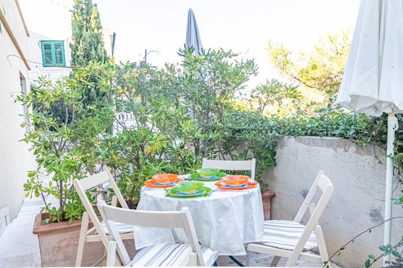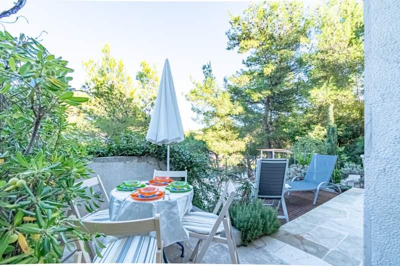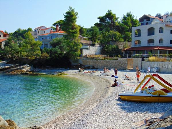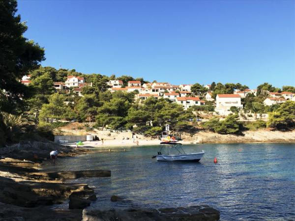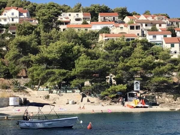 Turistička pristojba je uključena u cijenu.Vila Inga smještena je u uvali Mala Lozna. U neposrednoj blizini apartmana nalazi se caffe bar smješten na stijeni koji se vrlo lijepo uklapa u prirodno okruženje i čije terase se pružaju sve do šljunčane plaže prikladne za cijelu obitelj na kojoj postoji mogućnost najma ležaljki, suncobrana i tuš. Nekoliko koraka dalje počinje stjenovita obala uz koju se može uživati u moru i kupanju u puno intimnijem okruženju. Ispred Vile prolazi cesta kroz borovu šumu i uz more koja vodi do uvale Lovrečina - idealna za vožnju biciklom, šetnje, jogging i sl. 100 metara dalje, nalazi se odlično opskrbljeni supermarket sa izvrsnom ponudom hrane, pića i kućanskih potrepština. Do centra Postira stiže se za 20-tak minuta, laganom šetnjom uz obalu mora.