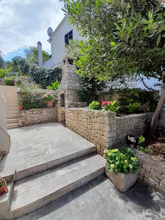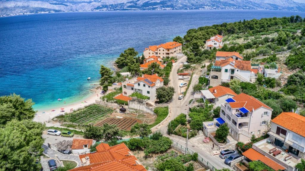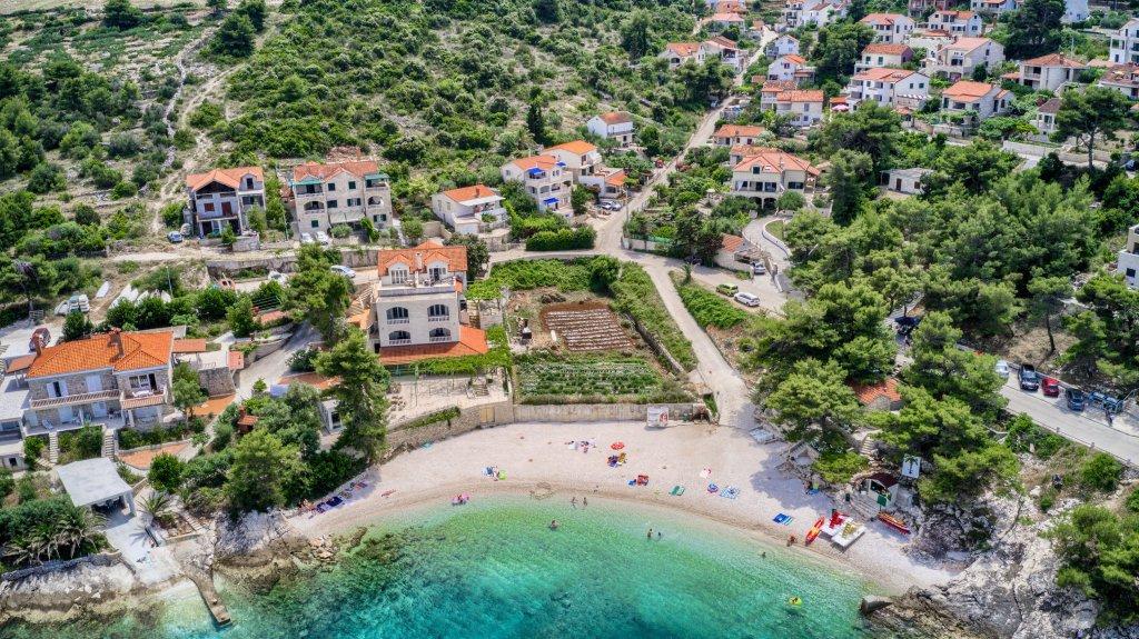 Prelijepa kuća uz more s pet apartmana. Smještena je na otoku Braču, mjesto Postira. Plaža ispred kuće je šljunčana, a pristup moru je moguć i u osamljenim uvalama do kojih vode šetnjice uz more.Ukoliko želite miran odmor, daleko od gradske vreve i smoga ili pak bogat noćni život, ovo je pravo mjesto za Vas. Mjesta otoka Brača su jako dobro cestovno povezana, pa kad poželite kupanje na čuvenom Zlatnom ratu, posjet seoskom gospodarstvu u Sutivanu ili pokojem muzeju, sve to možete obaviti u jednom danu.
