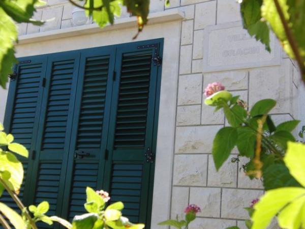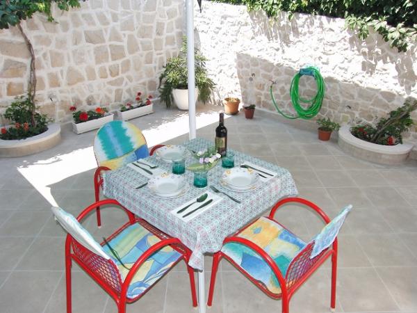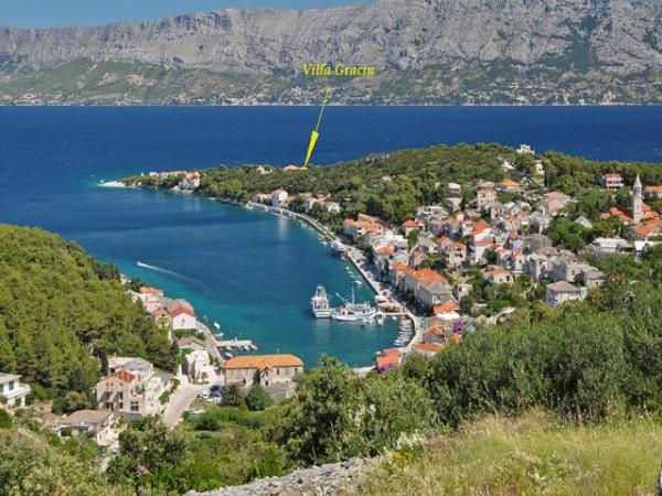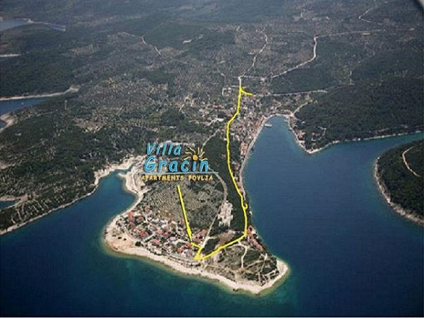 Dalmatinska kamena villa na atraktivnoj i mirnoj lokaciji u Povljima na otoku Braču, u neposrednoj blizini plaže i 300 m od centra mjesta. Tri jednosobna i jedan studio apartman smješteni su u prizemlju. Svi apartmani su predviđeni za 2 odraslih, a maksimalni kapacitet je 3 odraslih, tj. 2 odraslih sa 2 djece do 12 godina. Treća odrasla osoba, odnosno dvoje djece u svim apartmanima spavaju na kauču na rasklapanje u dnevnom boravku. Svi apartmani imaju zaseban ulaz kao i zasebnu terasu sa sjedećom garniturom, spavaću sobu sa bračnim krevetom, kuhinju sa blagovaonom i dnevnim boravkom u jednoj prostoriji, kao i kupatilo sa tušem. Sat tv, klima uređaj, bežična internet veza i sef standardna su oprema svih apartmana i dodatno se ne naplaćuju, kao ni boravišna pristojba. Mogućnost korištenja zajedničke perilice rublja u zajedničkom prostoru u prizemlju dodatno se naplaćuje.