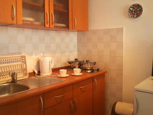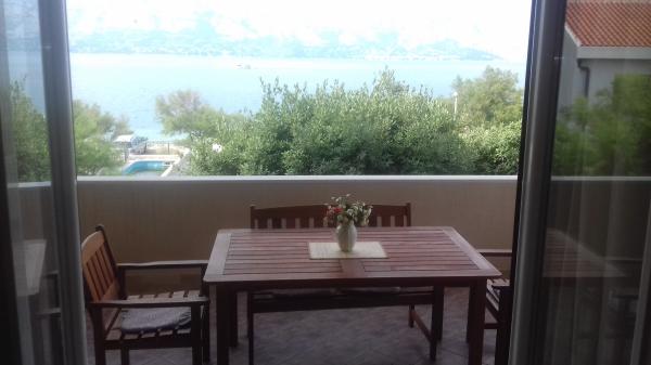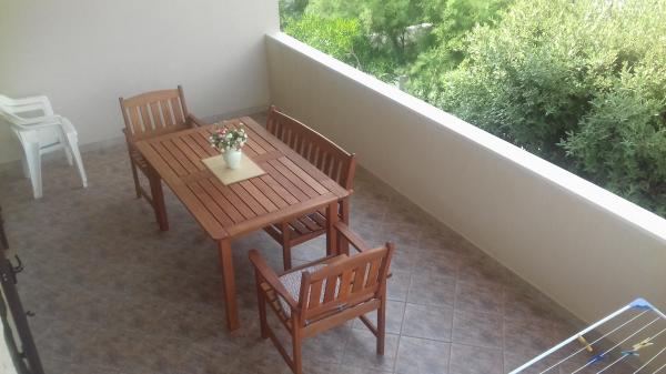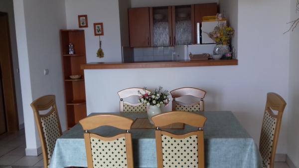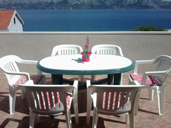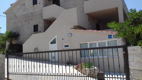 Apartmani se nalaze u kamenoj kući u tihom i mirnom naselju s prekrasnim pogledom na more i plažu do koje ima svega 50m. Kompletno su opremljeni, a sadrže dvije spavaće sobe, dnevni boravak s opremljenom kuhinjom i blagovaonicom, TV-SAT, klima, kupaonica, veliku terasu. U dvorištu je na raspolaganju parking i roštilj.