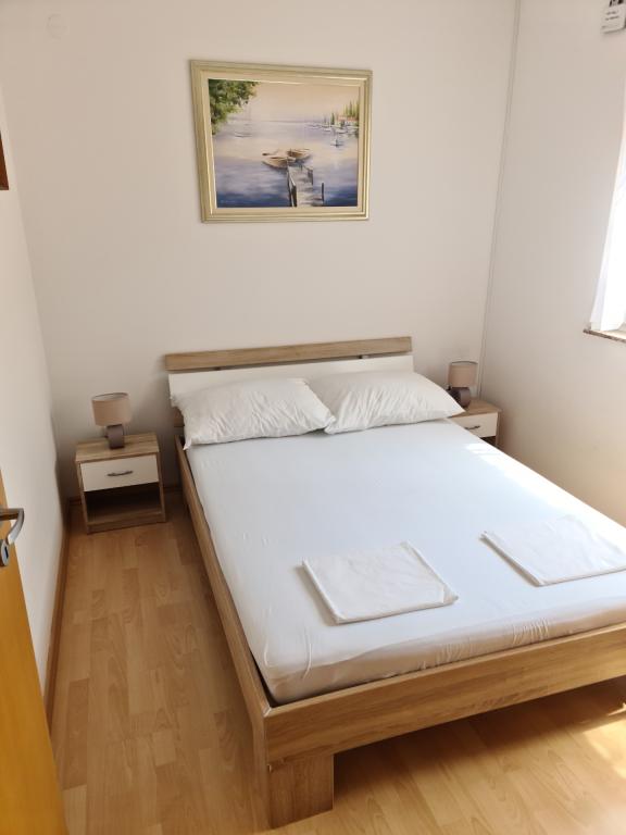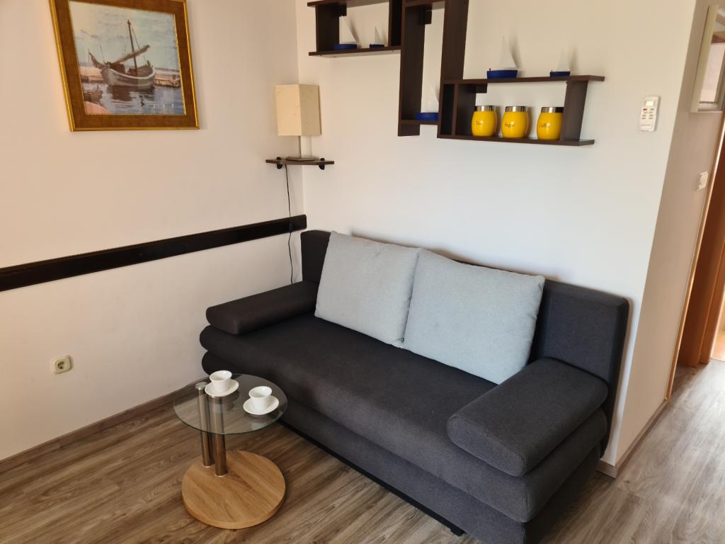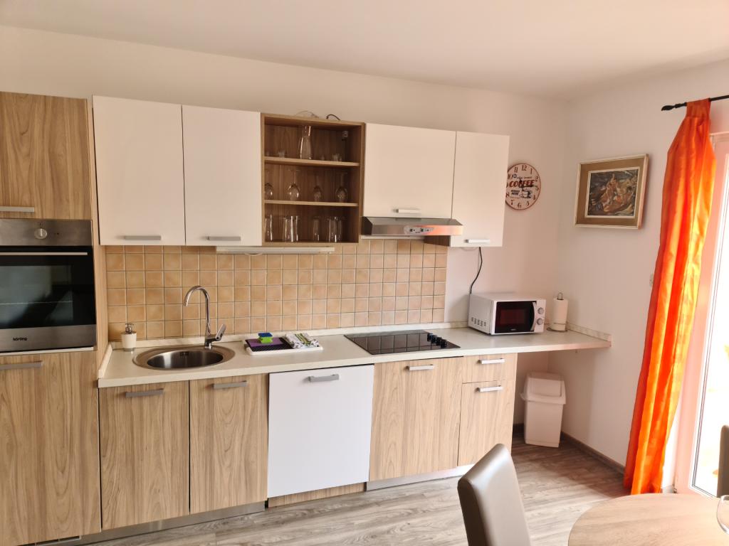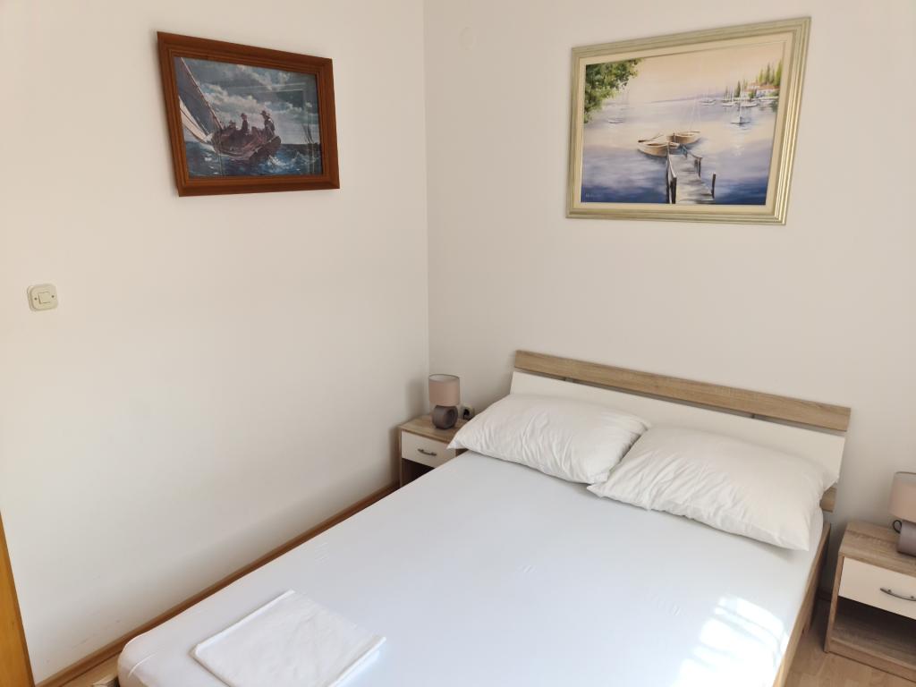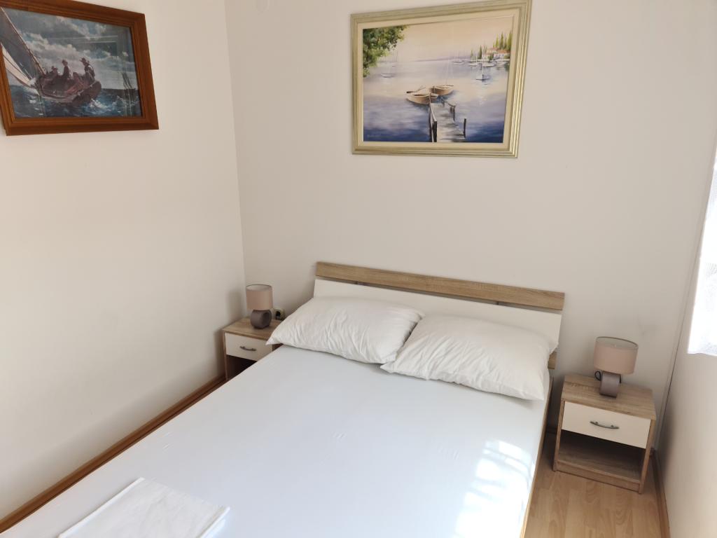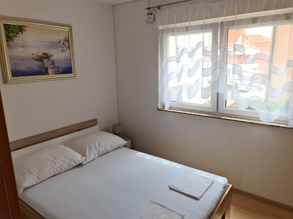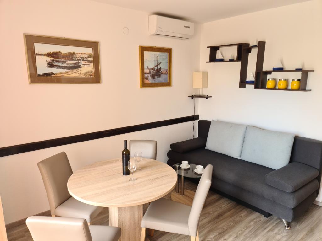 U potpunosti opremljen apartman 30m2 s odvojenom spavaćom sobom, balkonom te privatnim parkirnim mjestom, idealan za parove ili obitelji nalazi se na prvom katu urbane vile, udaljen 1 minutu laganog hoda do plaže i kafića uz more. Sastoji se od spavaće sobe opremljene udobnim bračnim krevetom I velikim kliznim ormarom, dnevnog boravka s kuhinjom (frižider, perilica za suđe, ploča za kuhanje s pećnicom, mikrovalna, kafe aparat, kuhalo za vodu) opremljenog kaučem na razvlačenje, stolom I stolicama za ručavanje, stolićem za kavu te smart ravnim televizorom ( besplatni Wi-Fi), kupaonice s tuš kabinom, wc-om I perilicom za veš, Apartman je klimatiziran. U neposrednoj blizini apartmana nalaze se dvije pješčane/šljunčane plaže, te razni sportsko, rekreativni I ugostiteljski sadržaji (kafići, restorani, tenis tereni, aqua park...)