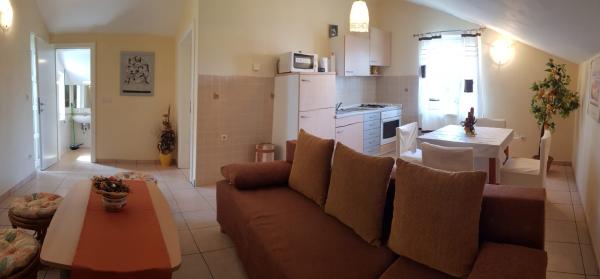 Apartman Oleander (51 m2) sastoji se od otvorenog prostora s boravkom (pomoćni ležaj za 2 osobe), blagovaonom i kuhinjom, odvojene spavaće sobe s bračnim krevetom (2 osobe) te kupaonice s tuš kabinom i WC-om. U spavaćoj sobi je bračni krevet, a u dnevnom boravku kauč na razvlačenje koji može poslužiti kao pomoćni ležaj za 2 osobe. Nalazi se na 1. katu, klimatiziran je i ima Wi-Fi. U dvorištu je vrt i terasa (12 m2) pogodna za druženje na otvorenom uz roštilj. Terasu i roštilj koriste isključivo gosti apartmana te je ne dijele ni s kime tako da ovdje mogu provoditi vrijeme družeći se, večerati ili čitati knjigu među mediteranskim biljem. Parkiralište je pored objekta i besplatno je. More i plaža udaljeni su 10-ak min laganog hoda, a centar Povljane (trgovine, kafići, restorani i sl.) je 5 min laganog hoda. Domaćin se nalazi u blizini te ako je potrebno Vam stoji na raspolaganju.