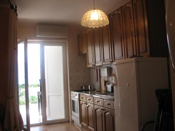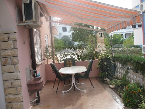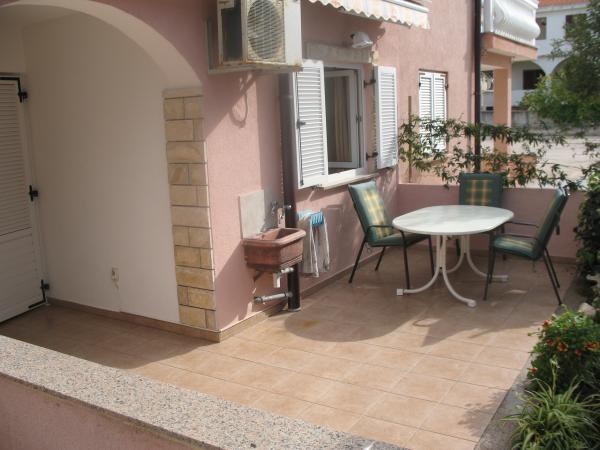 Apartman sadrži opremljenu kuhinju sa blagovaonicom(kutna garnitura na izvlačenje), kupaonicu(tuš-kabina, lavabo i wc), spavaću sobu sa bračnim krevetom. Apartman ima(izvlačna tenda za natkrivanje) i veliku terasu. Parkirno mjesto je osigurano. Kućni ljubimci nisu dopušteni. Broj ležajeva: 2 2 1(dječji krevetić)