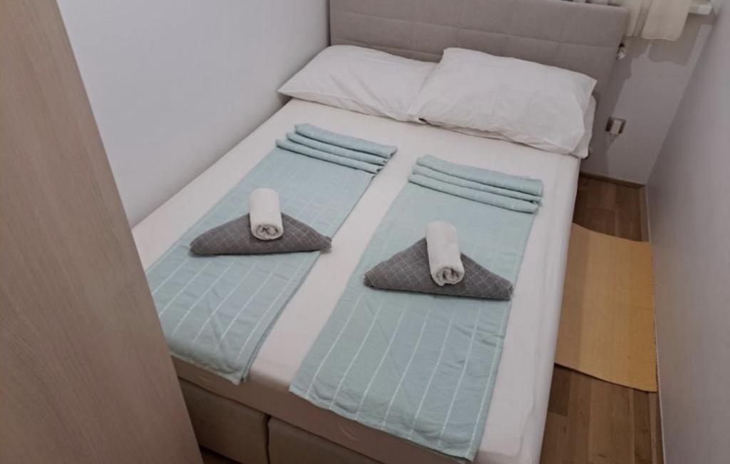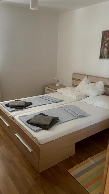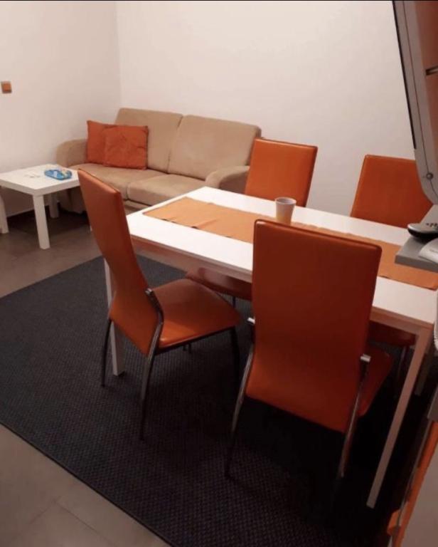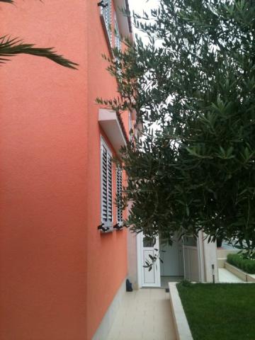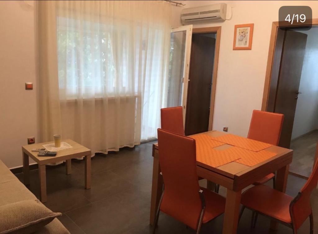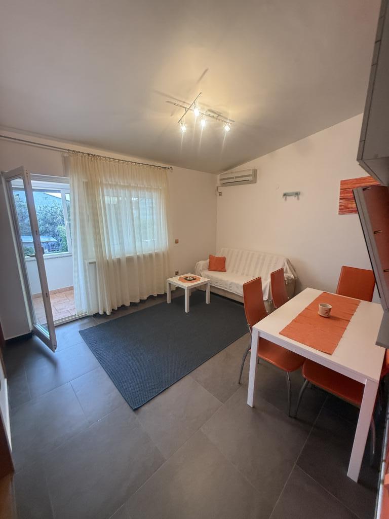 Apartmani idealni za obiteljski odmor U našoj ponudi imamo tri gotovo identična apartmana, svaki prilagođen za udoban obiteljski odmor. Svaki apartman sastoji se od: Dnevnog boravka s blagovaonom i kuhinjom Dvije spavaće sobe: roditeljska (160x200) i dječja (140x200) Dnevni boravak s kaučem. Kuhinja je opremljena standardnim pećnicama s indukcijskom pločom, manjim frižiderom, kuhalom za vodu i filter aparatima za kavu, kao i svim potrebnim posuđem. Kupaonica ima tuš kabinu, mala je, ali funkcionalna. Svaki apartman sadrži mirni kutak u obliku loggie s pomičnom stijenom. Na svim prozorima nalaze se mrežice protiv komaraca. Za naše goste također je dostupan vanjski roštilj s stolom i stolicama za uživanje na otvorenom. Naš higijenski standard je vrlo visok, što nam je posebno važno. U cijenu je uključeno: Klima uređaj Boravišna pristojba TV sat (nemamo Smart TV) Kompletno posuđe i posteljina Po jedan ručnik za svakog gosta Kućni ljubimci su dopušteni uz dogovor i posebnu tarifu.