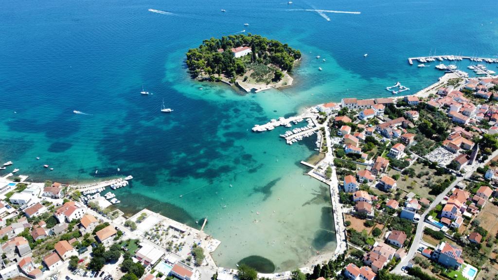 Sami apartman se nalazi malo iznad plaže Jaz. Apartman se sastoji od spavaće sobe s bračnim krevetom,dvosjednom na razvlačenje,trosjedom na razvlačenje,dječjom sobom,kupaonom,dnevnim boravkom i terasom sa koje se pruža prelijepi pogled na cijelo mjesto.Apartman je smještajnog kapaciteta za 2+2 osobe i ima 4 zvjezdice. Blizu apartmana nalazi se veliki dučan,restorani i pješćana plaža. Sami otok Ugljan ima dosta aktivnosti od pješačenja,planinarenja,biciklizma pa sve do lovnog ribolova. Također na otoku se nalaze i razne znamenitosti,od čega valja izdvojit utvrdu sv.Mihovil te otočić Galovac koje valja posjetit. Na otoku se može iznajmit i brod koji vas može povesti na instraživanje predivnog arhipelaga.
