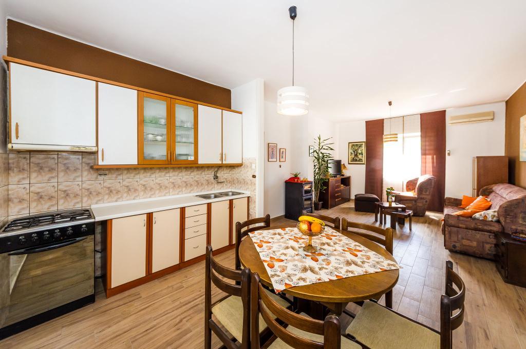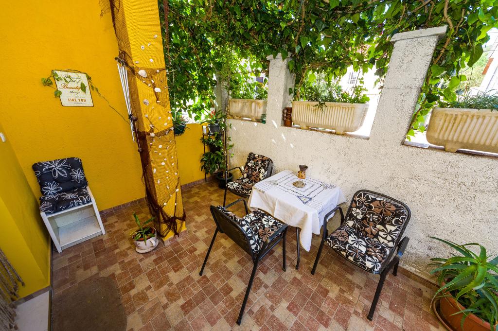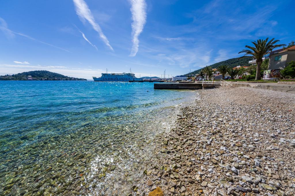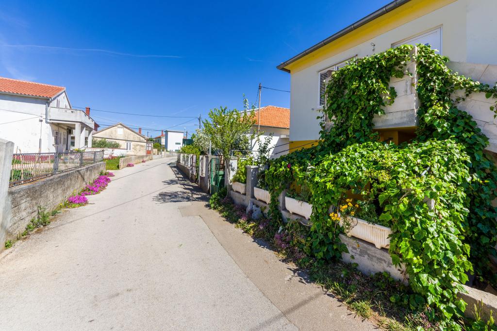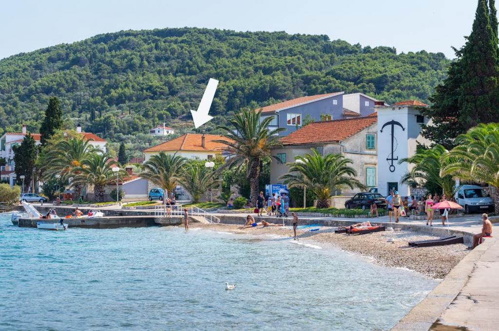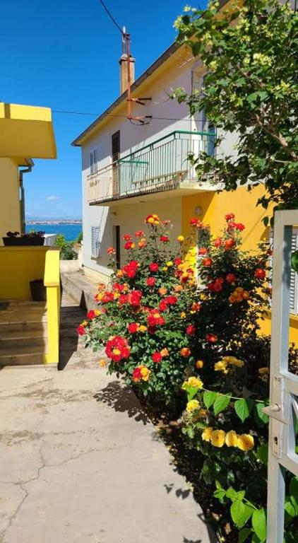 Dvosoban komforni apartman u prizemlju privatne kuće, prvi red do mora, u južnom djelu Preka, U neposrednoj blizini su market, ribarnica, mesnica, restoran, pizzeria, banka, ljekarna, pekarna i slastičarna, trajektno pristanište, benzinska crpka. Udaljenost od centra Preka i marine Preko 300 metara, šetnjom lungo mare. Dječje igralište udaljeno 300 metara. Plaza je kombinacija pijeska i šljunka, Na raspolaganju su ležaljke za plazu i suncobran. Mali mul ispred apartmana za gumenjak ili manji brod. Ispred ulaza malo dvorište zaštićeno od sunca zelenilom, sa stolom i stolicama za boravak i jelo. Parking je osiguran u neposrednoj blizini apartmana.