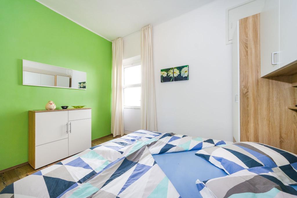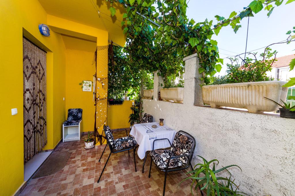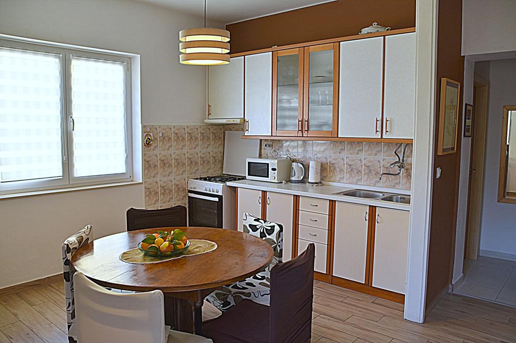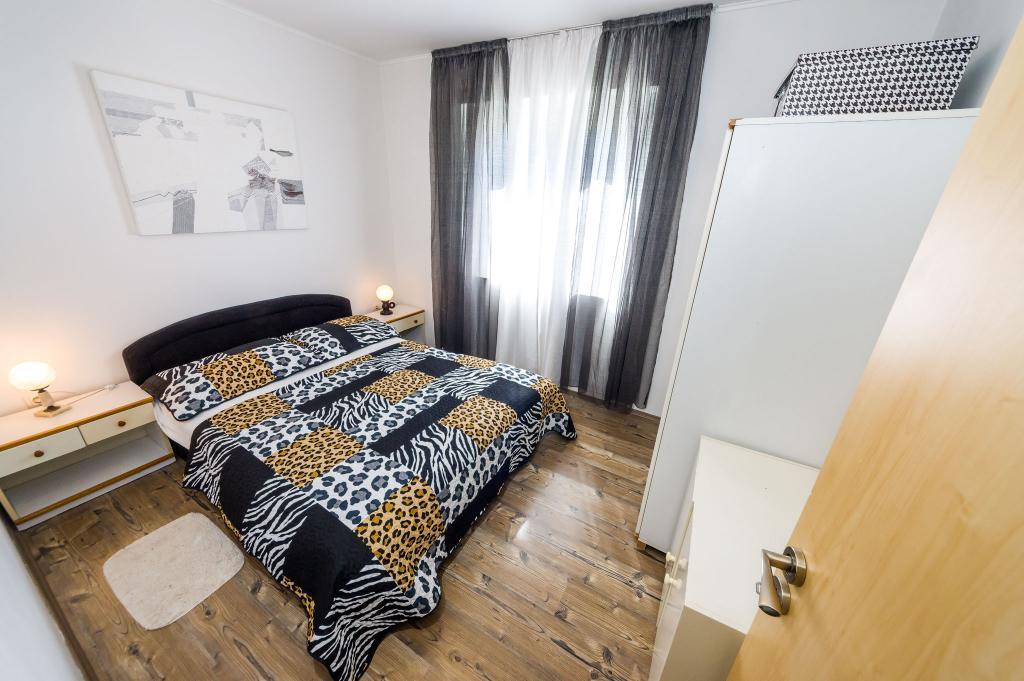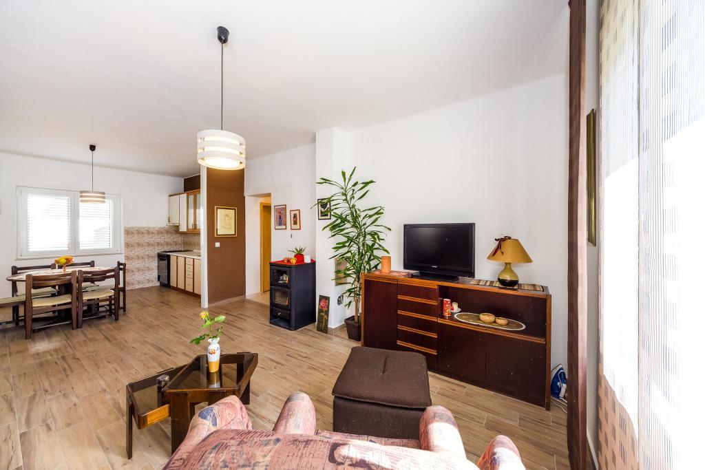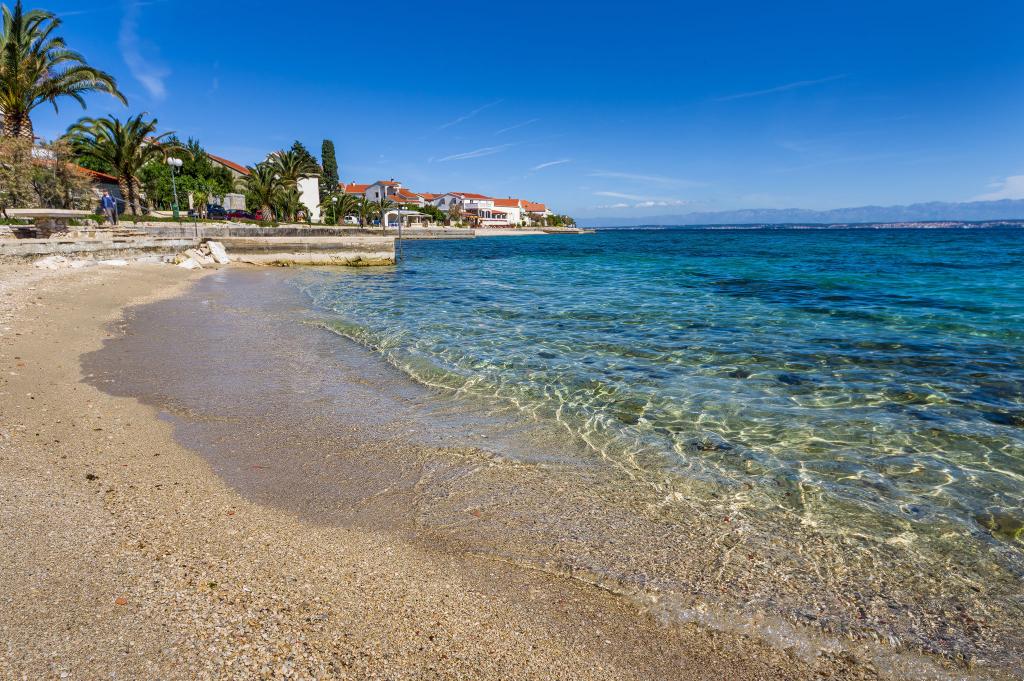 Dvosoban komforni apartman u prizemlju privatne kuće, prvi red do mora, u južnom djelu Preka, U neposrednoj blizini su market, ribarnica, mesnica, restoran, pizzeria, banka, ljekarna, pekarna i slastičarna, trajektno pristanište, benzinska crpka. Udaljenost od centra Preka i marine Preko 300 metara, šetnjom lungo mare. Dječje igralište udaljeno 300 metara. Plaza je kombinacija pijeska i šljunka, Na raspolaganju su ležaljke za plazu i suncobran. Mali mul ispred apartmana za gumenjak ili manji brod. Ispred ulaza malo dvorište zaštićeno od sunca zelenilom, sa stolom i stolicama za boravak i jelo. Parking je osiguran u neposrednoj blizini apartmana.
