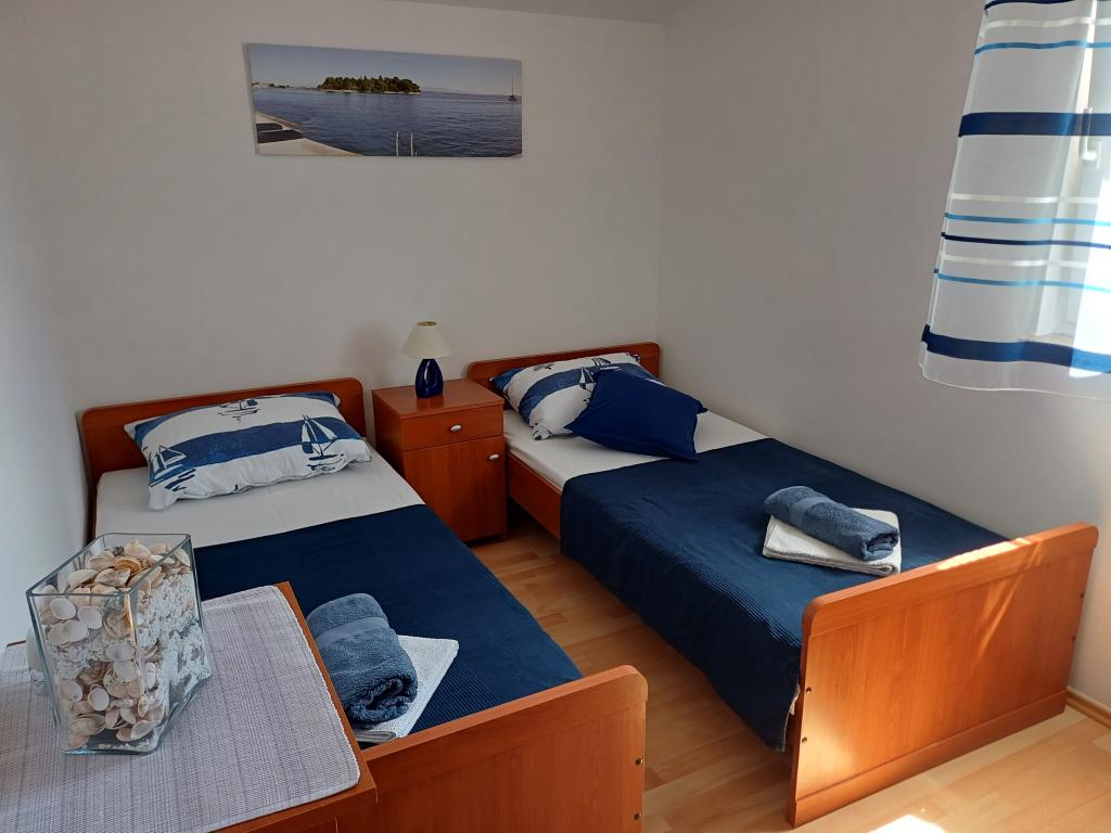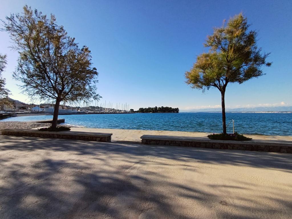 S pogledom na grad Zadar, na udaljene vrhove Velebita i otočić Galevac, a smješten ispred pješčane plaže Jaz u mjestu Preku, apartman Mirjam svojom udobnošću i toplinom pruža ugodan smještaj za obitelji s djecom, seniorima koji vole šetnje uz more, ljubiteljima biciklističkih staza ili ljubiteljima obilaska Zadarskog arhipelaga iznajmljenim gliserom. Apartman Mirjam nalazi se u objektu koji je svega 5 min. udaljen od plaže, gdje vam osvježenje nudi nekoliko terasa kafića i restorana uz more. Do centra mjesta potrebno je svega 12 min. lagane šetnje. Obilazak konoba, restorana, tržnice kao i supermarketa zadovoljiti će vaše potrebe. Višestruke dnevne brodske linije između mjesta Preka sa gradom Zadrom omogućiti će vam: obilazak povijesnih vrijednosti grada, uživanje u slušanju MORSKIH ORGULJA, poslati POZDRAV SUNCU, a dobar noćni provod upotpuniti će vaš odmor. Kompletno opremljen apartman Mirjam na 55 m2 ima terasu, dnevni boravak s kuhinjom, dvije spavaće sobe i kupaonicu s WC-om.