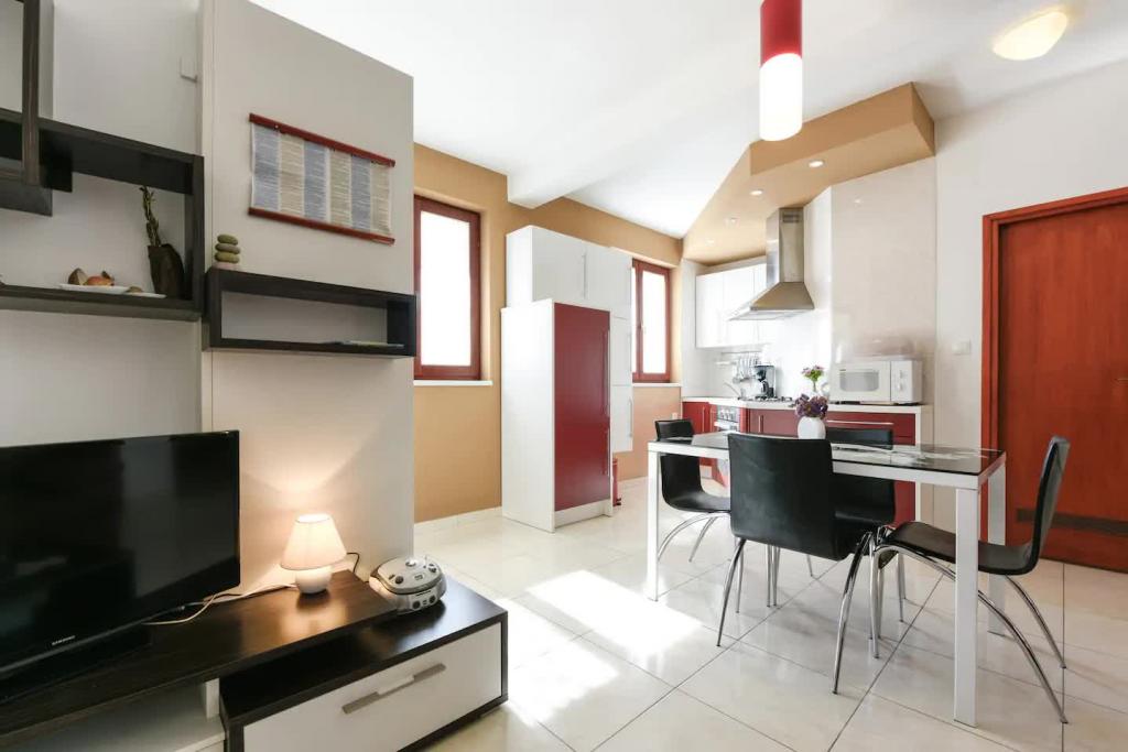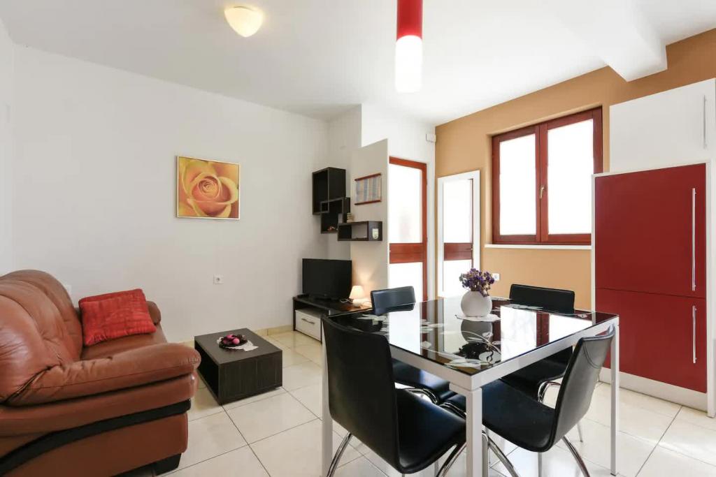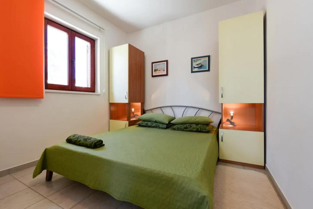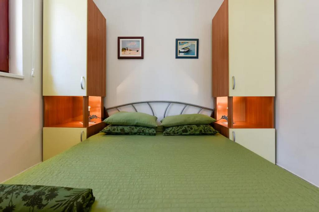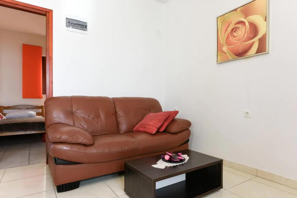 Novi, lijepo opremljeni apartmani u prizemlju obiteljske kuće, udaljeni par koraka od prekrasne plaže Jaz, koja nosi Plavu zastavu i u sklopu koje je odbojkaški igralište. U neposrednoj blizini nalaze se restorani i kafići, a dječje igralište udaljeno je svega dvadesetak metara. Svaki apartman ima vlastitu veliku terasu s pogledom na more. Apartmani imaju dvije spavaće sobe, opremljenu kuhinju, kupaonicu, dnevni boravak, te vanjski roštilj i privatni parking. Poklon dobrodošlice uključen je u cijenu