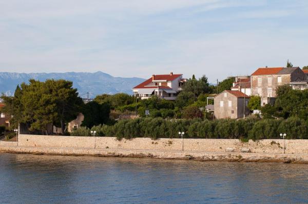 Turistička pristojba je uključena u cijenu.Na Ošljak možete doći vlastitim brodom koji možete besplatno vezati u luci ili trajektom ( linija Zadar-Ošljak-Preko vozi 4 puta na dan, vožnja traje 15 min ). Kuća u kojoj je apartman okružena je zelenilom, stablima maslina i vrtom u kojem su ljuljačke za djecu, tobogan, trampolin. More je udaljeno 10- tak metara. Otočić Ošljak je Park šuma i njegova posebnost je u tome što na njemu nema cesta ni prometa.Na otoku se nalazi restoran koji je od apartmana udaljen 5 minuta hoda. Svi ostali sadržaji ( trgovina, pošta, banka, benzinska crpka, te brojni drugi restorani i kafići) nalaze se na susjednom otoku Ugljanu udaljenom par minuta s gliserom.