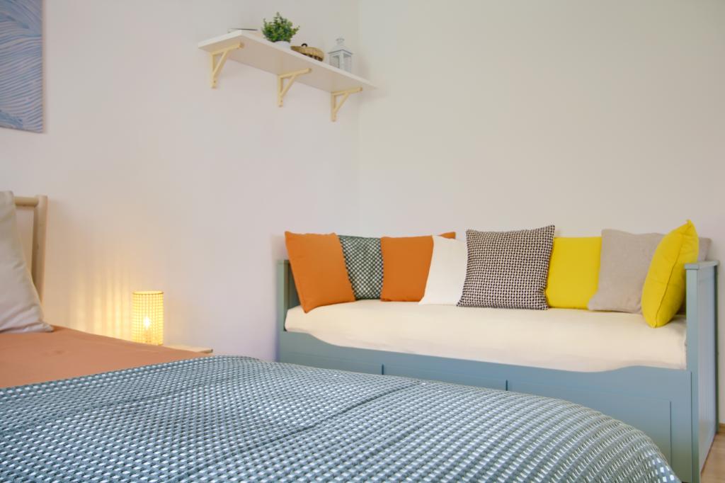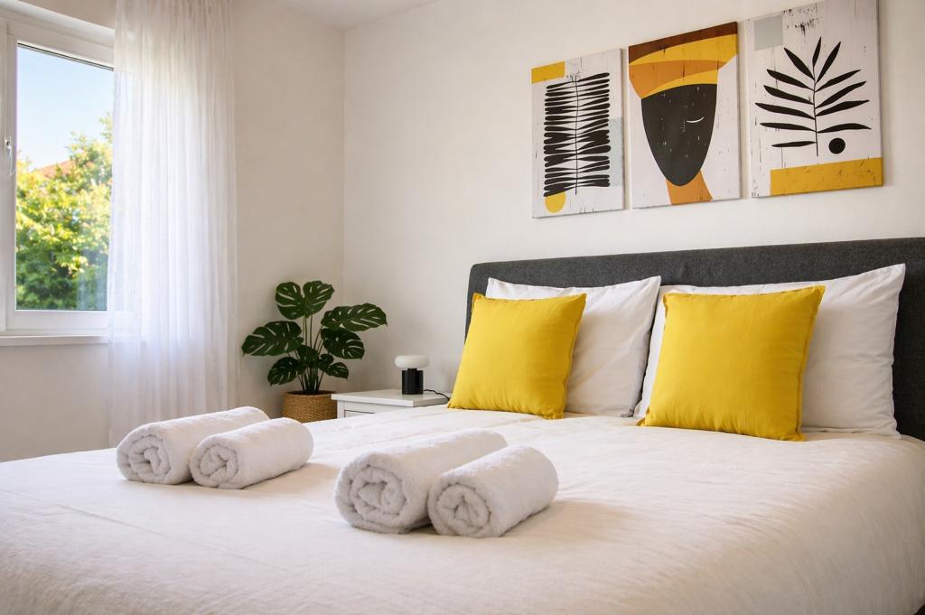 Smješten u prvom redu do mora, ovaj šarmantni i svijetli apartman pruža savršen spoj udobnosti i mediteranskog ugođaja. S prekrasnim pogledom na vrt i mirnim okruženjem, idealan je za obitelji ili grupu do 4 osobe + 1 dodatni gost. Ispred kuće nalazi se šljunčana plaža, savršena za jutarnje kupanje ili večernje opuštanje uz zvuk valova, dok se na svega 20 minuta lagane šetnje nalazi poznata pješčana plaža Jaz. Lokacija je iznimno praktična – u neposrednoj blizini nalaze se restorani, trgovine i svi osnovni sadržaji, do kojih se lako dolazi pješice, bez potrebe za automobilom. Apartman je potpuno opremljen za ugodan i bezbrižan boravak te uključuje klima uređaj, WiFi internet, aparat za kavu, hladnjak, pećnicu i Smart TV u sobi, pružajući sve što vam je potrebno za opuštanje nakon dana provedenog na moru. Prostor odiše vedrinom i opuštenom, vibrantnom atmosferom, savršenom za bezbrižan odmor uz more i uživanje u mediteranskom načinu života.