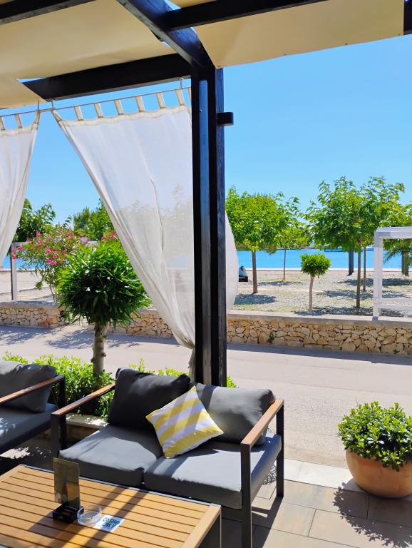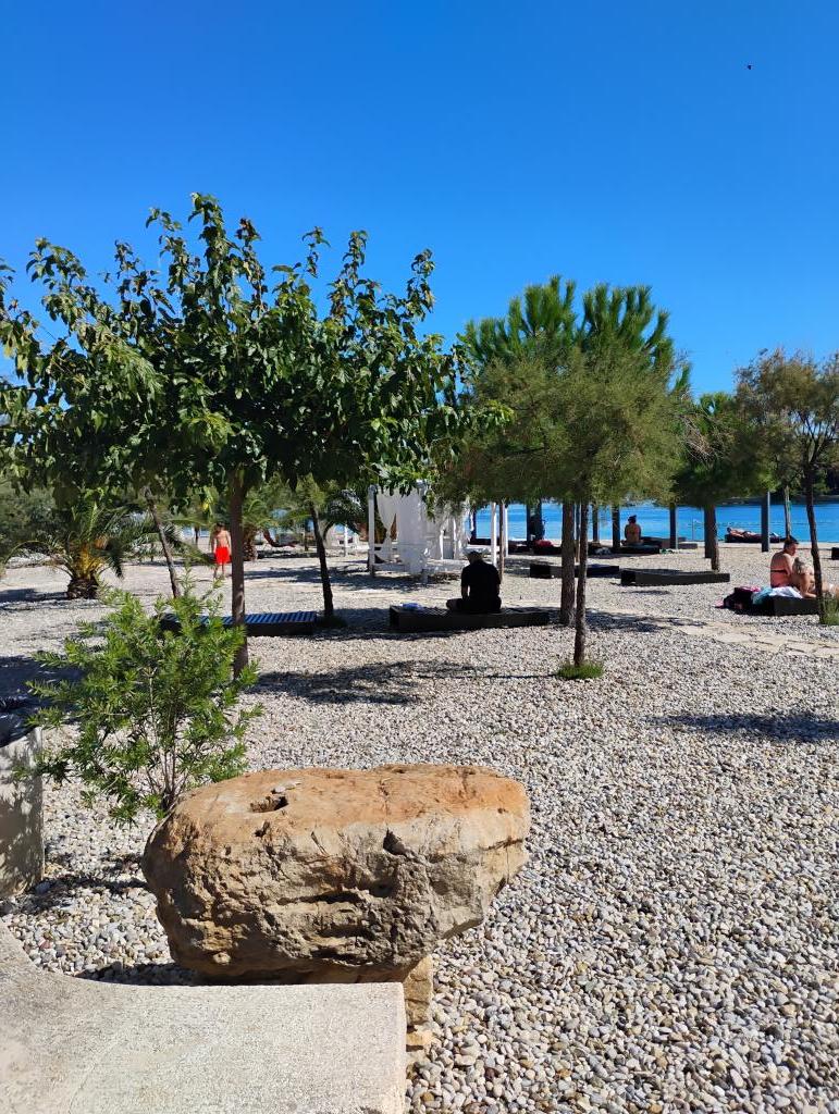 Novi, lijepo opremljeni apartmani u prizemlju obiteljske kuće, udaljeni par koraka od prekrasne plaže Jaz, koja nosi Plavu zastavu i u sklopu koje je odbojkaški igralište. U neposrednoj blizini nalaze se restorani i kafići, a dječje igralište udaljeno je svega dvadesetak metara. Svaki apartman ima vlastitu veliku terasu s pogledom na more. Apartmani imaju dvije spavaće sobe, opremljenu kuhinju, kupaonicu, dnevni boravak, te vanjski roštilj i privatni parking. Poklon dobrodošlice uključen je u cijenu