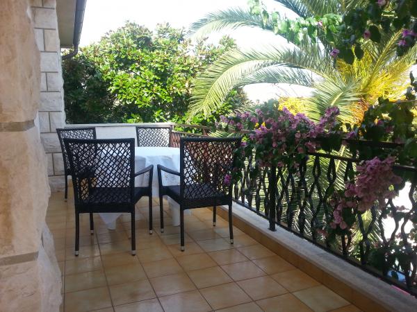 Apartmani se nalaze u obiteljskoj kući u mirnom dijelu Premanture 300 m od mora. Jedan apartman namijenjen je smještaju 5 osoba dok je drugi opremljen za smještaj 2 osobe. U prvom apartmanu u prizemlju nalazi se kuhinja, prostrani dnevni boravak koji je voltom povezan s blagovaonicom i ima direktan izlaz na veliku terasu sa sjedećom garniturom, kupaonica s tušem te odvojeni toalet. Stubama se dolazi na kat gdje su tri spavaće sobe: jednoposteljna soba, dvije dvoposteljne sobe s bračnim krevetima te kupaonica s kadom. Jedna od soba ima terasu. Drugi apartman sastoji se od kuhinje, spavaće sobe s bračnom posteljom, kupaonicom s tuš kabinom, lijepom terasom sa sjedećom garniturom. Ovaj apartman je klimatiziran. Gostima je na raspolaganju roštilj te sjedeća garnitura na travnjaku za zajedničko druženje.