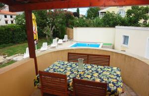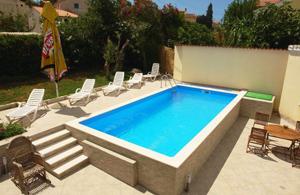 Elegant apartment is a tourist facility with a swimming pool, jacuzzy and a walled garden. Suitable for groups up to 6 2 guests. The pool is 3 x 6 m, in the garden there is patio. Parking for 3 cars. The attractiveness of the facility which is located only 200 meters from the entrance to the park Kamenjak. Plot area is 350 m2 in total. There are 2 bedrooms 1 living-bedroom, 1 kitchen and 3 bathrooms. Kamenjak Nature Park is an oasis of protected nature with natural bays and beaches. Kamenjak falls in eumediterranean vegetation zone. Landscape Kamenjak make a combination of woods, lawns, shrubs, underbrush and rocky terrain.