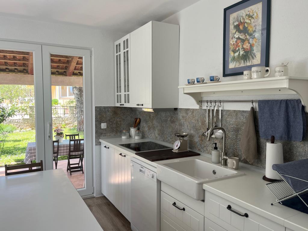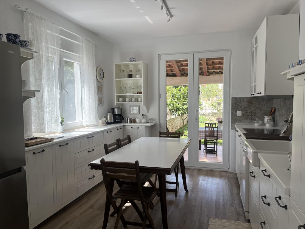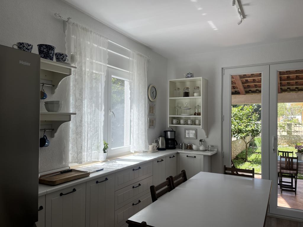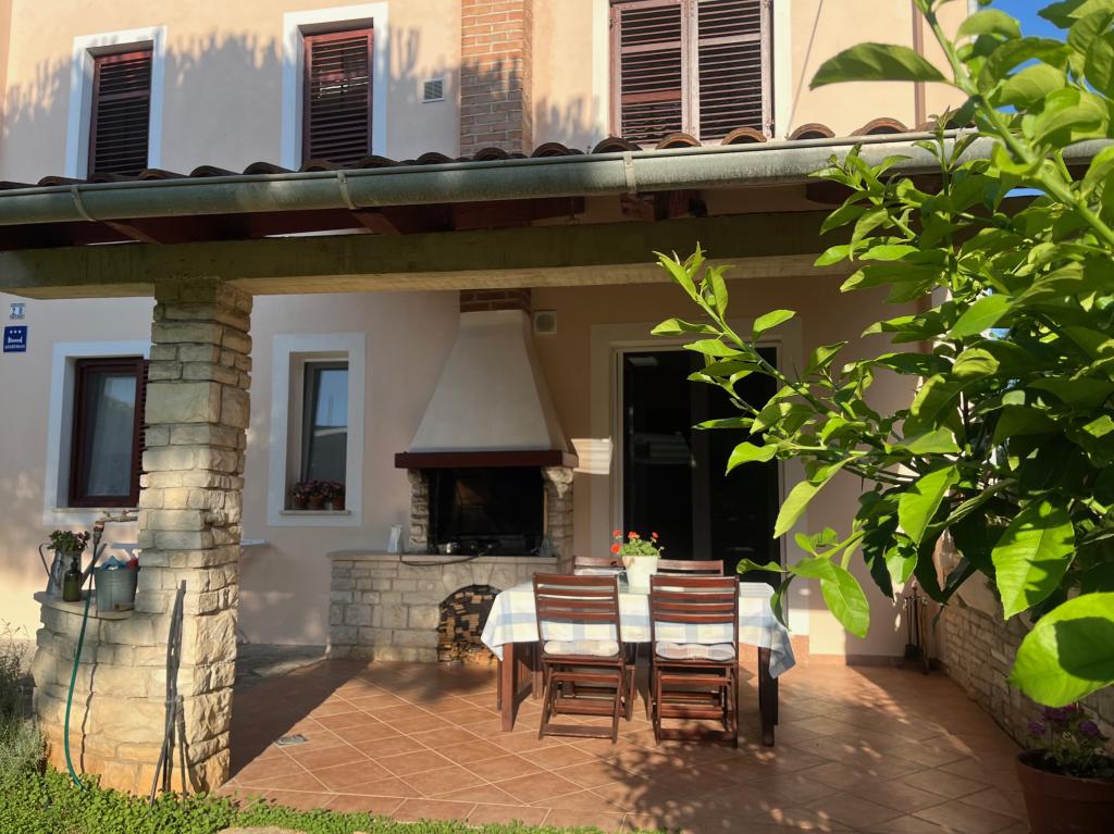 Ovim putem još jednom pozdravljamo naše divne domaćine i zahvaljujemo se na odličnoj usluzi! Kao tročlana obitelj odabrali smo ovaj apartman prvenstveno zbog komocije i odlične lokacije. Apartman je novouređen i stvarno prostran i prekrasan, s dvije spavaće sobe koje imaju svaka svoju kupaonu s wcom, veliki dnevni boravak, dvije klime u objektu što je dodatni plus, najljepšu kuhinju koja je imala sve što ti treba od suđa i aparata, a iz koje izlaziš na terasu s roštiljem, predivnim vrtom i dvorištem. S ulazne strane postoji još jedna prostrana natkrivena terasa a parking za auto je natkriven i auto je bio u hladu, što je veliki plus s obzirom na to da smo svakodnevno obilazili najljepše plaže na poluotoku, baš po našem guštu, kristalno bistro more, šuma, predivan priroda!! Mogli smo se poslužiti biciklom, a dućani, pekara, kafići i sami centar tog malog mjesta je sve na otprilike 10 minuta laganog hoda. Nažalost naš odmor je prekratko trajao i ako dođemo opet u Istru, svakako bi se tu vratili!! Sve pohvale za domaćina i smještaj, lijepo je vidjeti da se tu uložilo puno truda i detalja, sve ostalo je samo bonus! Lijepi pozdrav
