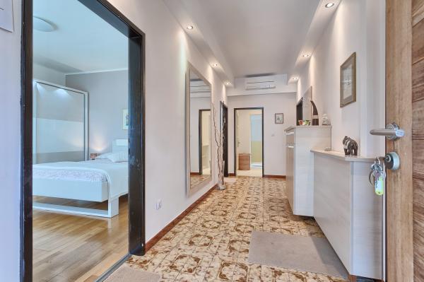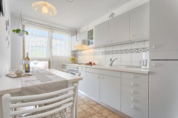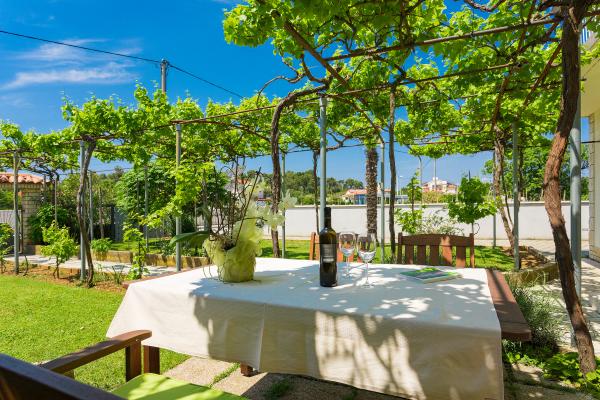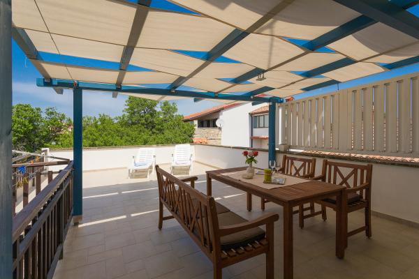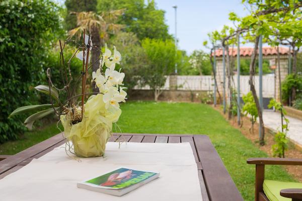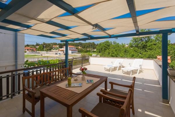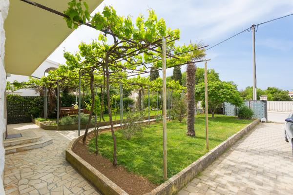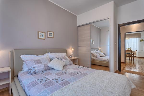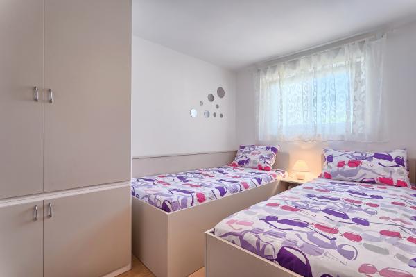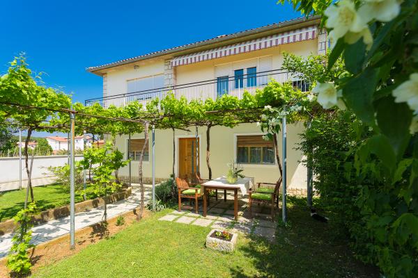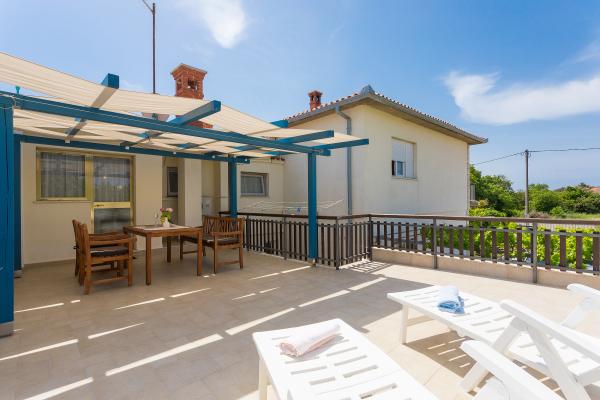 U ovoj obiteljskoj kući nalaze se dva renovirana apartmana za 4 osobe. Veoma su tihi i ugodni za boravak s djecom, budući je kuća okružena vrtom, te zatvorenim parkirališnim prostorom za dva vozila. Svaki apartman ima poseban ulaz, dvije sobe, dnevni boravak, kupaonicu sa tušem, kuhinju, hodnik, klimu, perilicu rublja i Wifi u svim prostorijama, dok apartman u prizemlju ima i perilicu za suđe. Apartman na katu ima veliku terasu, dio je zaštićen tendom tako da omogućava ugodan boravak, dok apartman u prizemlju ima u sklopu vrta prostor za ručavanje i boravak na otvorenom. Iako su smješteni uz glavnu prometnicu, apartmani su zaštićeni od pogleda i buke, a od centra su udaljeni dvije minute laganog hoda. Isto toliko vremena trebati ćete da se priključite na cestu koja vodi prema zaštićenom području Kamenjak, koji će vas oduševiti prirodom i kilometrima zanimljivih uvala i plaža i gdje će te svakako pronaći i svoje mjesto za ugodan odmor.