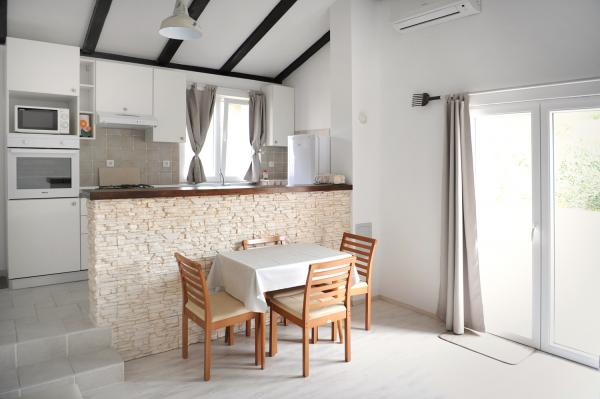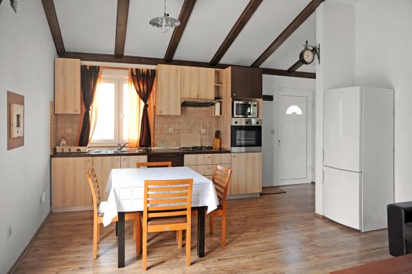 Kuća s apartmanima se nalazi 150 m od glavnog pristaništa – luke Krijal. Veličine 40-ak metara kvadratnih, apartmani se sastoje se od jedne spavaće sobe s bračnim krevetom, kupaonice s tuš kabinom te prostranog dnevnog boravka i kuhinje. Udoban kauč na razvlačenje može služiti kao pomoćni ležaj za dvije osobe. Opremljeni su satelitskom televizijom, wi-fi i klima uređajem. Odišu rustikalnim stilom i prepuni su zanimljivih i originalnih detalja što im daje posebnu toplinu i šarm. Zbog različitih tonova dekora u apartmanima i lakšeg snalaženja prilikom rezervacija, apartmane dijelimo na smeđi - čokoladni i bijeli - vanilija. :-)