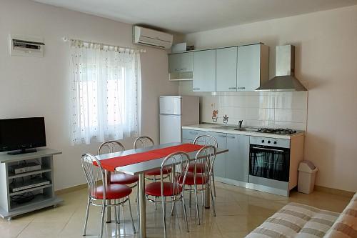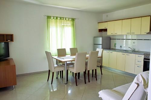 XXl apartmani za 6-8 osoba , potpuno opremljeni i ugodni za duži obiteljski boravak . Svaki apartman ima vlastiti parking i poseban ulaz , te vlastitu terasu . Priridna plaža ( besplatna) je udaljena 200 metara . Pristup plaži je osiguran za invalide i dječja kolica. Uz plažu se nalazi novouređena šetnica za ugodne večernje šetnje. Kraj je miran , a more kristalno čisto.