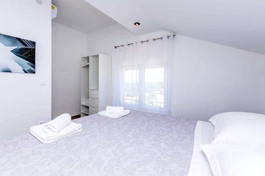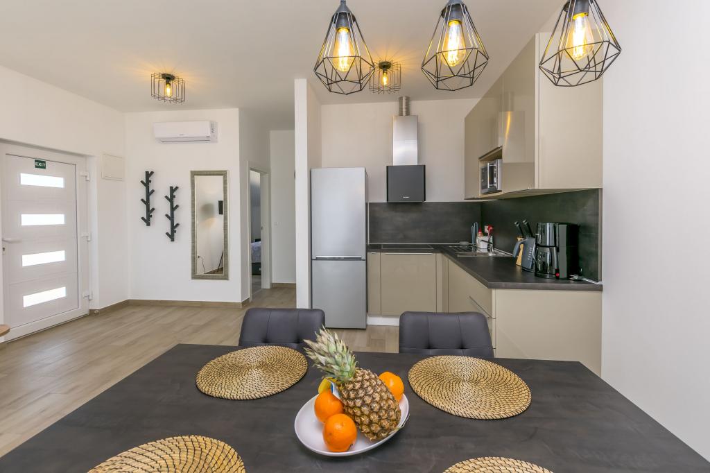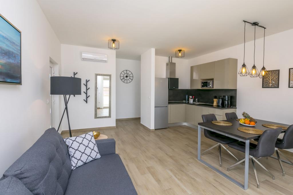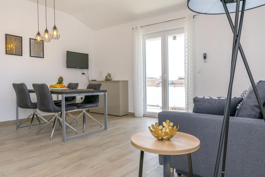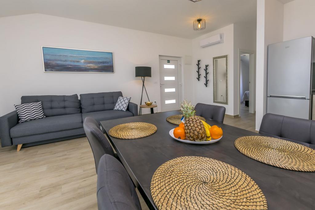 Ovaj moderan, novouređen apartman u blizini plaže Velika Raduča, nudi komforan smještaj za 2-4 osobe. Sastoji se od spavaće sobe s boxspring krevetom i zasebnom klima jedinicom. Kupaona sa tuš kabinom je svijetla i ugodna. Velika kuhinja, blagovaona i dnevni dio čine jednu cjelinu u kojoj je kauč na razvlačenje za do 2 osobe, klima uređaj, TV sa puno programa na različitim jezicima. Sa balkona se pruža pogled na more. Besplatan parking za 1 auto je odmah ispred kuće. Apartman se nalazi 5 minuta hoda do centra Primoštena i minutu do plaže. Kompletno opremljen za ugodan boravak: perilica rublja, daska za peglanje i peglo, perilica suđa, hladnjak sa zamrzivačem, mikrovalna pećnica, toster, kuhalo za vodu, aparat za kavu,mini sef. Dobro došli!