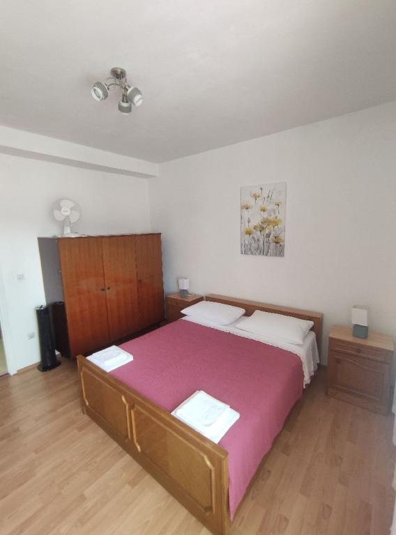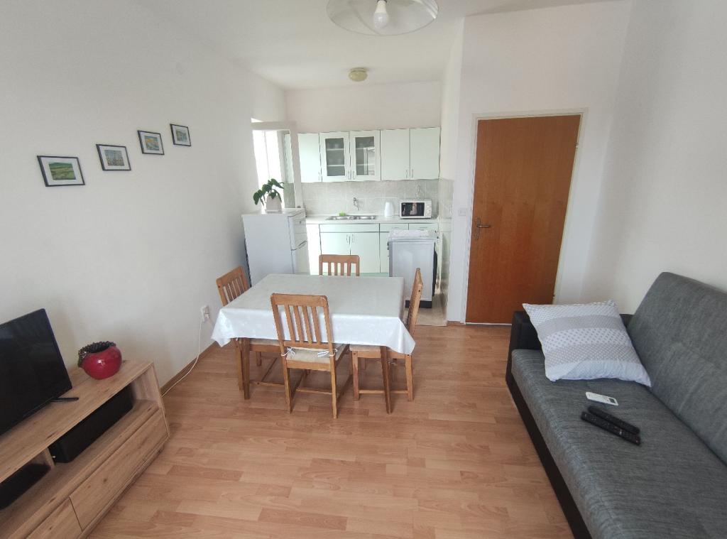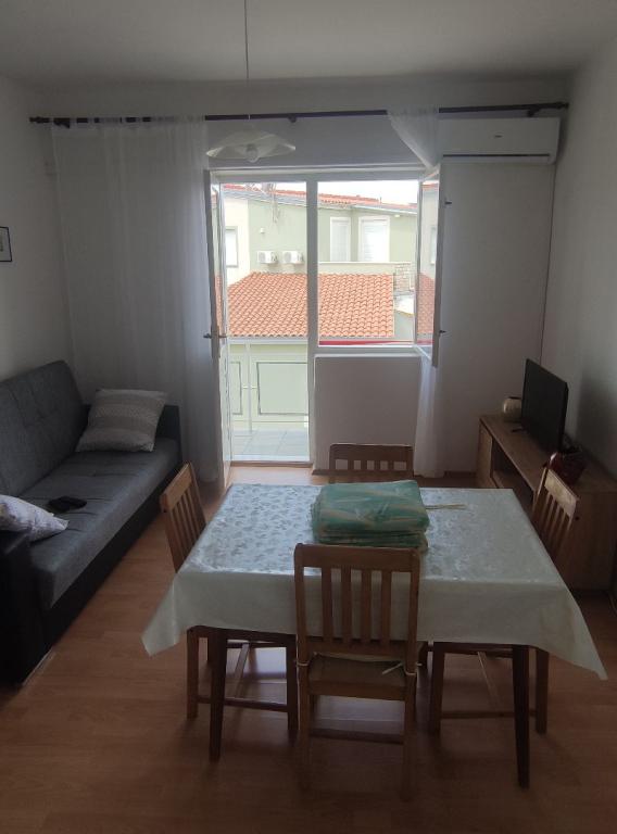 Prostrani apartman u mirnom dijelu mjesta. Nalazi se 5 minuta hoda od plaže te 10 minuta od centra. U cijenu uključeno jedno parkirno mjesto ispred kuće, Wi-Fi internet, MAX TV, klima uređaj u svim sobama, te boravišna pristojba.