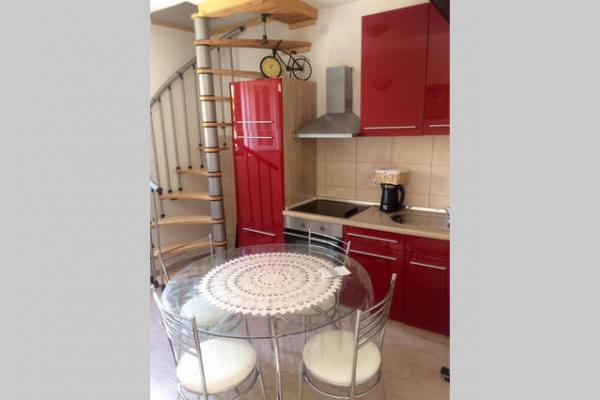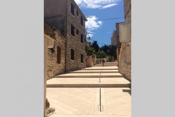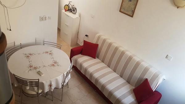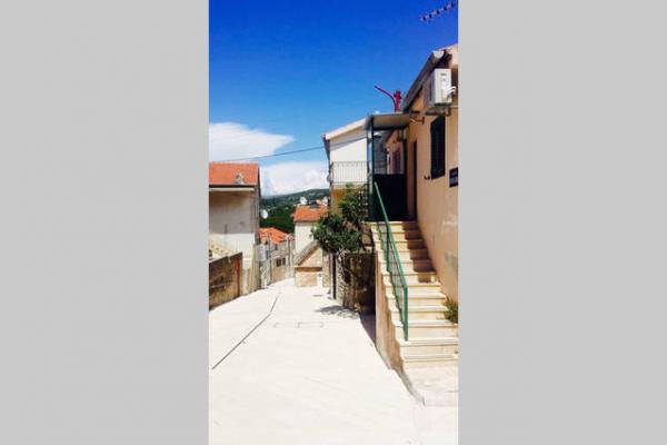 Objekt se nalazi u samom srcu Primoštena. Okružen uskim uličicama i kamenim kućama te svega nekoliko metara od crkve Sv. Jurja koja pruža pogled na morsku pučinu koji Vas neće ostaviti ravnodušnim. Restorani, kafići i konobe su smješteni cijelom dužinom ulice u kojoj je ovaj objekt. Svega par minuta Vas dijeli od velike šljunčane plaže i od glavnog trga na kojem se održavaju zabavni sadržaji. Ukoliko poželite prošetati, šetnica se proteže okolo cijelog starog dijela te pruža jedinstven ugođaj. Apartman je namijenjen za 4 osobe. Sadrži mali dnevni boravak, wc, kuhinju, a unutarnje stepenice vode Vas do dvije spavače sobe sa dva bračna kreveta. Apartman je malen, ali uistinu simpatičan. U samom je centru i u blizini svega. Parkirno mjesto je besplatno, ali je udaljeno 10-15 min hoda od apartmana, jer automobili ne smiju u centar. Parking se nalazi u blizini benzinske stanice, a maleni električni automobil Vas zajedno s Vašom prtljagom dovodi točno ispred apartmana.