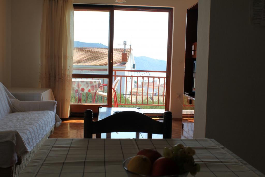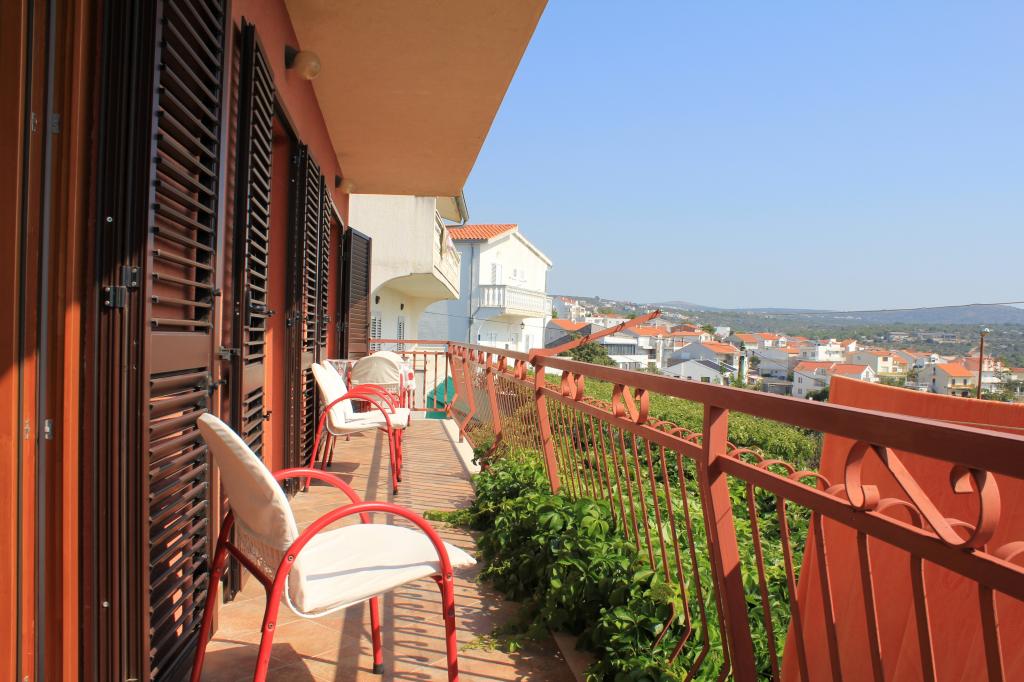 Apartman se nalazi na prvom katu objekta u mirnom predjelu Primoštena, na brdu Glavičice. S balkona apartmana pruža se predivan panoramski pogled na staru jezgru Primoštena, brdo Gaj na kojem se nalazi kip Gospe od Loreta, okolne otoke i more. Objekt se nalazi na 10 minuta hoda do plaže i centra mjesta. Uz apartman osigurano je parkirno mjesto.