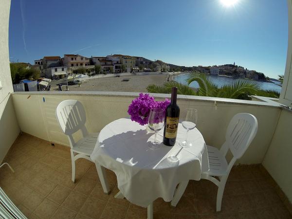 Turistička pristojba je uključena u cijenu. Šaljemo pismenu potvrdu rezervacije (voucher)Prilikom dolaska u apartman, gosti su dočekani s paketom dobrodošlice koji se sastoji od pića dobrodošlice i butelje vina. U apartmanima se nalaze posteljina i ručnici koji se mijenjaju svakih 7 dana. Gostima se također na služenje daje opcija korištenja perilice rublja jedanput sedmično, uz prethodnu najavu. Sve smještajne jedinice imaju balkon ili terasu s pogledom na more, internet, TV- Sat i klima uređaj te osigurano parking mjesto.