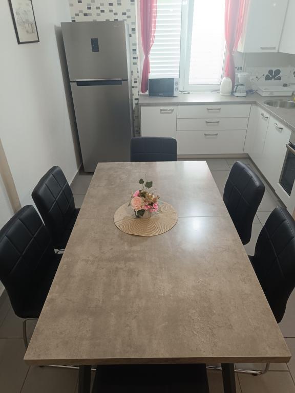 Apartmani se nalaze u sklopu obiteljske kuće. Osiguran parking ispred kuće ili na obližnjem gradskom parkingu (na 100 m udaljenosti- troškove pokriva domaćin). Objekt se nalazi 3-4 minuta hoda do najbliže plaže, a do centra cca 7-8 minuta.