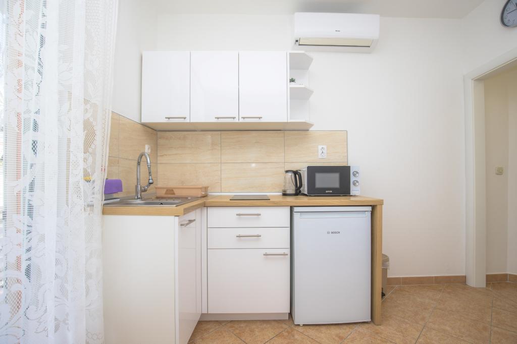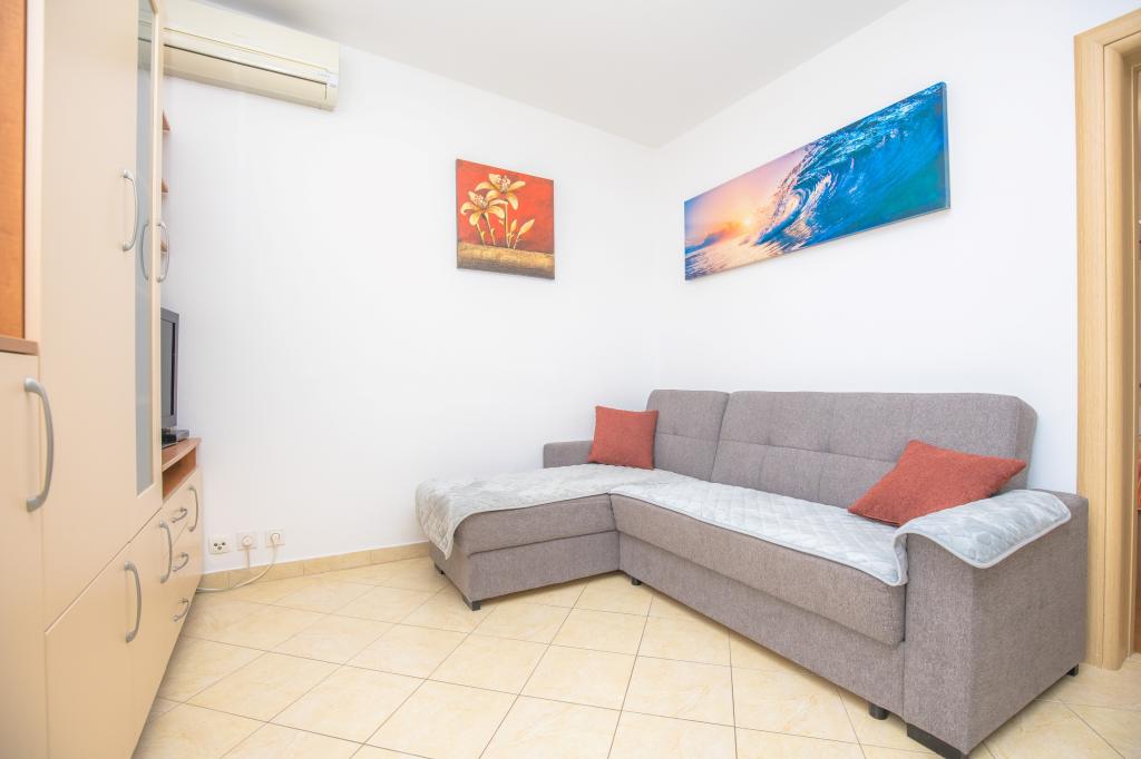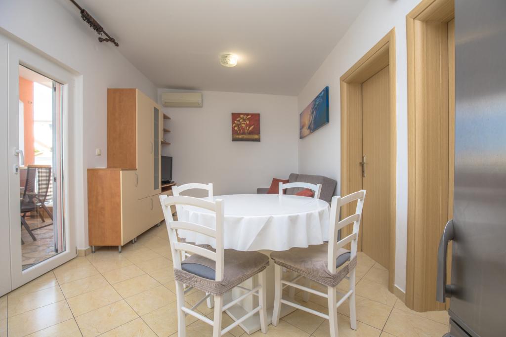 Apartman se nalazi svega 2 minute do mora s šljunčanom plažom i kafićem, šetnicom do centra uz more. Nalazimo se u mirnom okruženju. U sklopu kuće nalazi se garaža te dvorište s parkingom.