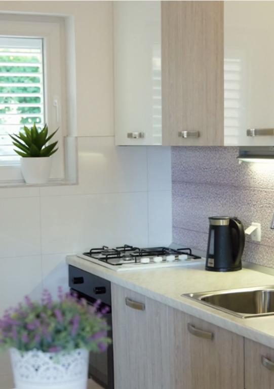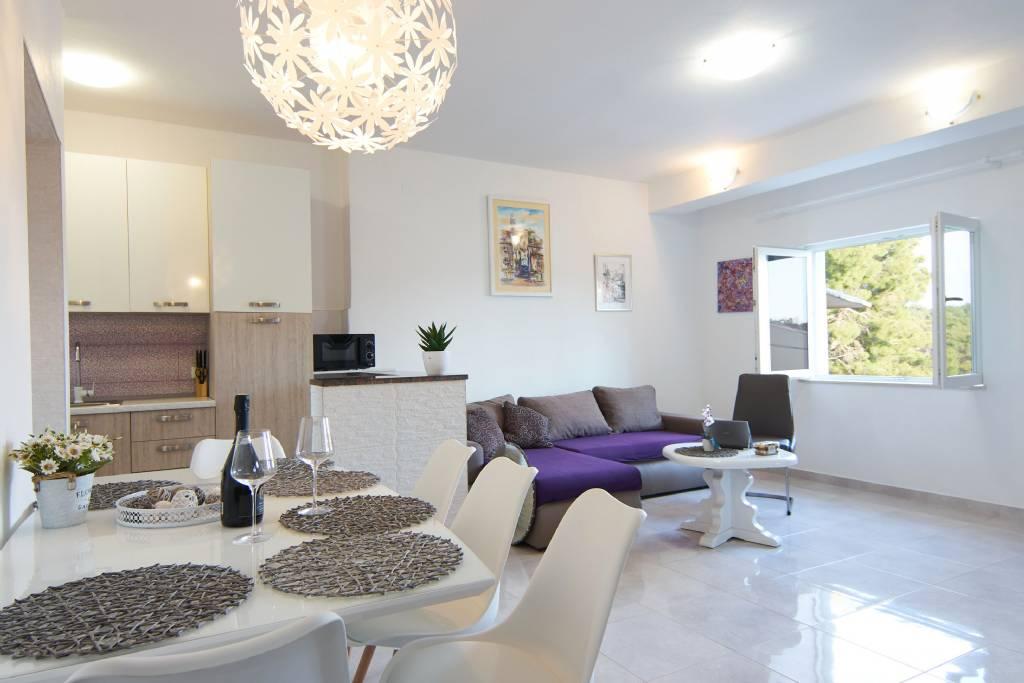 Apartmani se nalaze u mirnom dijelu Primoštena u borovoj šumici udaljeni 30 metara od mora, 200 metara do plaže i 5-10 minuta šetnje uz more do samog centra.