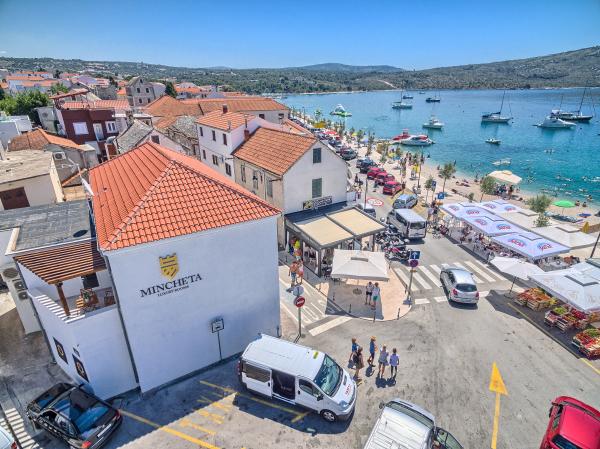 Ova nekretnina je sagrađena početkom 19. stoljeća, u vlasništvu obitelji Lekaj je krajem 2012. godine, obnovljena ove godine, s početkom obnove 03. 04. 2017, smještena u središtu Primoštena, s koje možete uživati u izvanrednom pogledu na stari grad, more i zapanjujućih luksuznih jahti. Imovina je potpuno obnovljena i spremna za vas da doživite ljepotu deluxe soba u poziciji centra Primoštena. Drago nam je što dolazite, Hvala Vam i želimo Vam ugodan dan! --Mincheta-- Vilson L.