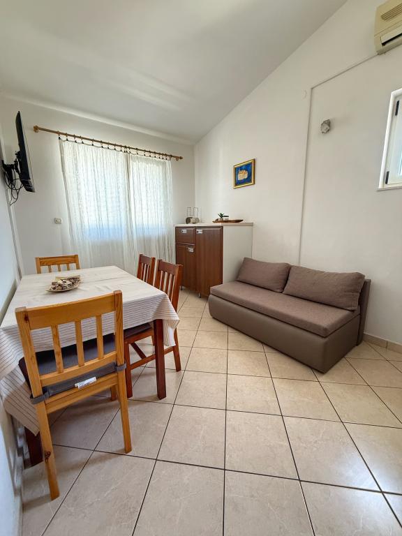 Vrlo prostran apartman u prizemlju, ogromna krasna natkrivena terasa. Vlasnici su vrlo ljubazni i od pomoći. Namještaj je nešto stariji, ali apartman nudi sve što je potrebno za ugodan odmor. Također ima klima-uređaj. Plaža je u neposrednoj blizini - prekrasna je, s velikom hladovinom drveća i čistim morem. Preporučujem!