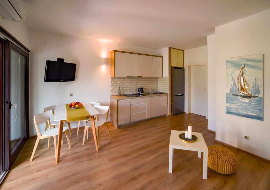 Kompletno uređeni, namješteni i opremljeni apartmani koji se nalaze uz samo more i plažu sa osiguranim ležaljkama . Apartmani se nalaze u uvali Tepli Bok udaljenoj svega 800m od samog centra predivnog Primoštena. Do samog centra se doalzi šetnicom uz more za samo 15 ak minuta hoda. Imamo 10 smještajnih jedinica različitih velićina od apartmana za 2 osobe do apartmana za 8 osoba. Naša oaza vam pruža priliku za pravi i ugodan odmor, uživanje u suncu i čistome moru. Uz sav svoj komfor, pruža Vam se prekrasan pogled sa svake terase apartmana i daje priliku da uživate u primoštenskom zalasku sunca, koji je poznat kao najljepši i najromantičniji zalazak.