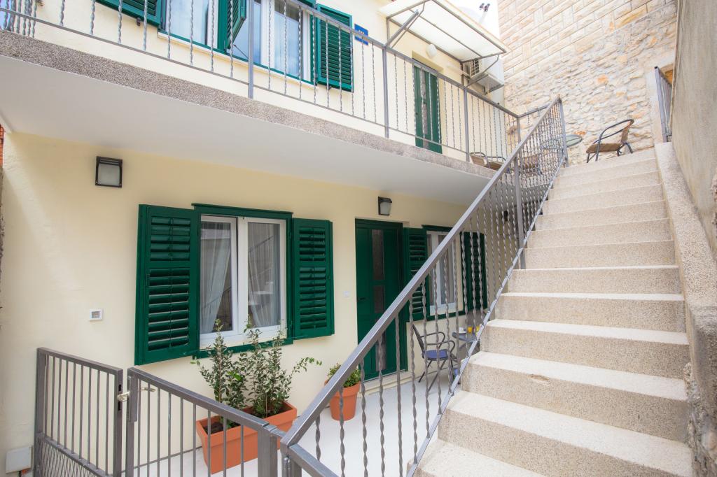 Novouređeni apartmani u starom dijelu Primostena, strogi centar, okružen restoranima, suvenirnicama i dućanima. Apartmani (ca 55m2) ima 2 spavaće sobe, kuhinju, kupaonicu s tušem i balkon. Ima klimu, SAT TV, perilicu rublja. Parking osiguran van starog dijela, oko 300 metara od apartmana.