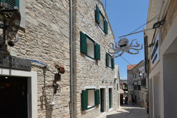 Suvremeno opremljeni apartman u centru stare gradske jezgre Primoštena. Zaboravite na vožnju automobilom sve što vam je potrebno za ugodan odmor nalazi se u krugu od 200m. Prelijepe, kristalne plaže su na 50m od apartmana, Dućani i mnoštvo restorana, cafea i drugih sadržaja su u neposrednom susjedstvu (10m). Parkirno mjesto osigurano vam je i uključeno u cijenu, transfer do apartmana u centru odvija se električnim papamobilom. Dva apartmana mogu biti i spojeni kao, veliki, dvoetažni stan za udoban smještaj max. 6 (šest) osoba.