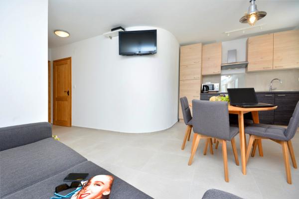 Turistička pristojba je uključena u cijenu. Šaljemo pismenu potvrdu rezervacije (voucher)Prekrasan apartman, minimalistički, s ukusom namješten, sadrži sve što je potrebno za ugodna boravak. Domaćica jako ljubazna, dostupna ako je nešto potrebno ili nam je samo trebala kakva informacija ili preporuka za restoran. Definitivno preporučujemo!