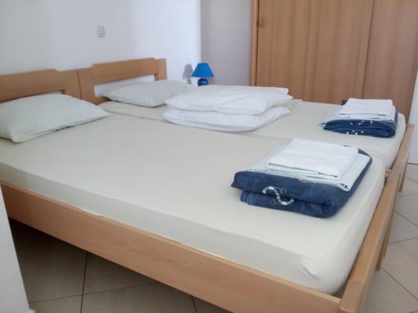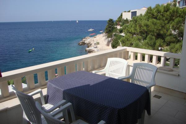 Naši apartmani imaju prekrasan pogled na more i otoke. Imaju terasu, dnevni boravak, spavaću sobu, potpuno opremljenu kuhinju i kupaonicu sa tušem ili kadom. Za naše goste dostupno je parkirno mjesto te besplatan WiFi i satelitska TV.