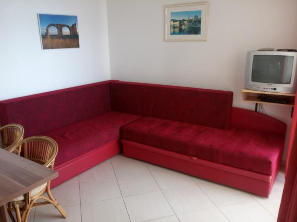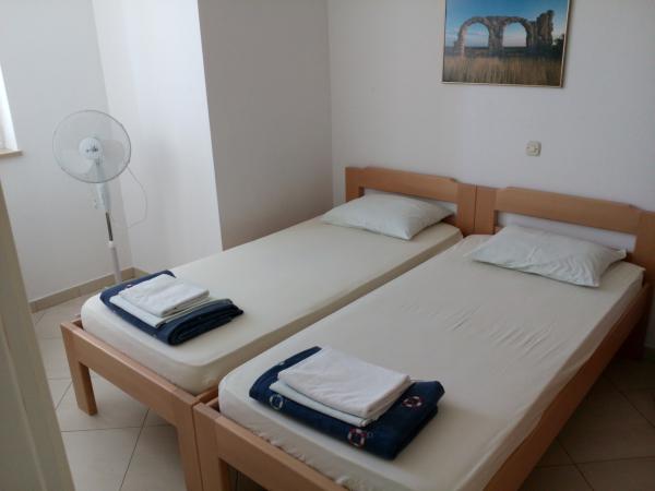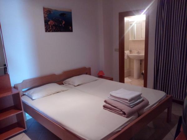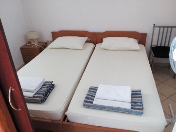 Predivno mjesto za one koji traže mir za opuštanje, a ujedno na pješačkoj udaljenosti od mora od centra grada, gdje se nalaze trgovine i restorani. More doslovno preko puta. Možete odabrati pristup moru postupno i ravno u dubine. Sam smještaj je zadovoljavajući i imate sve što vam treba, ali želim istaknuti prekrasnu veliku terasu s ležaljkama, koja pruža veći dio dnevnog hlada i pogled na more i centar grada u pozadini. Vlasnici su jako ljubazni i susretljivi, hvala im puno. Ovdje ćemo se redovito vraćati.