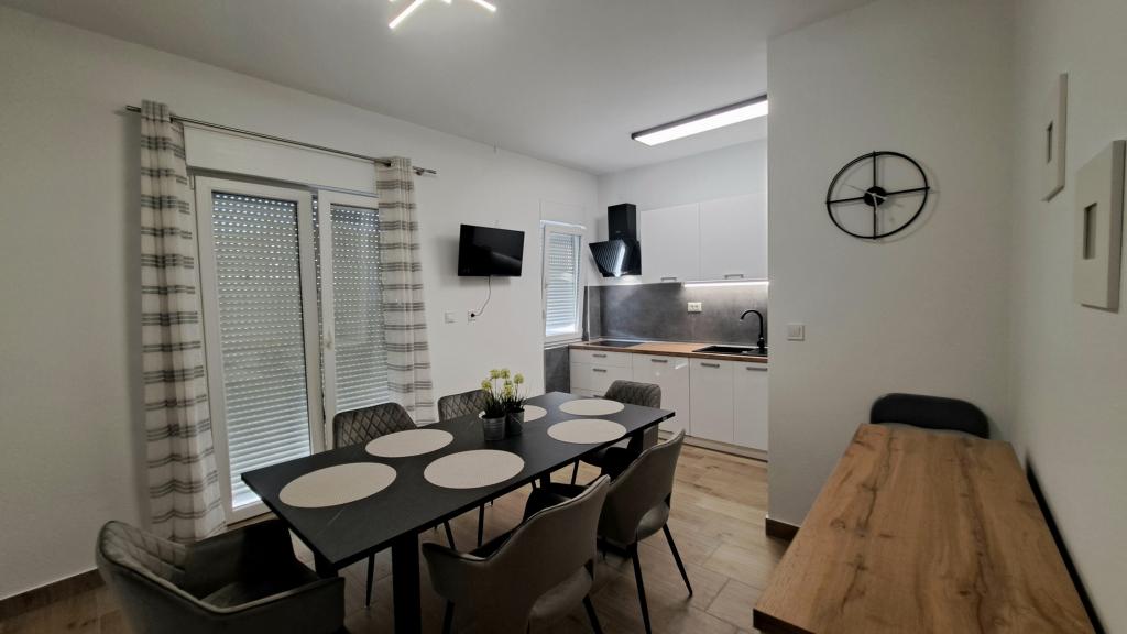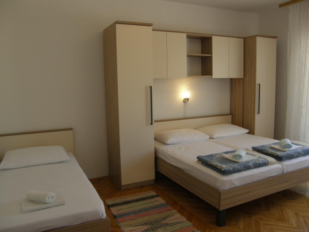 Apartmani Zdravka se nalaze oko 10 minuta pješke od centra, mora i plaže. Klimatizirani su i imaju besplatni wifi. Pogodni za smještaj više obitelji jer se sastoje od tri apartmana :u prizemlju je mali studio za 2 osobe. Studio ima klimu, wifi, perilicu suđa, perilicu rublja i malu terasu za opuštanje. Na prvom i drugom katu su apartmani za 5 osobe, svaki sa dvije spavaće sobe, kuhinjom i blagovaonicom, kupaonicom i wc-om. Svaki apartman ima klimu, wifi, SAT TV i lijepi balkon s pogledom na more. Iza kuće je besplatni parking za 1 auto po apartmanu.