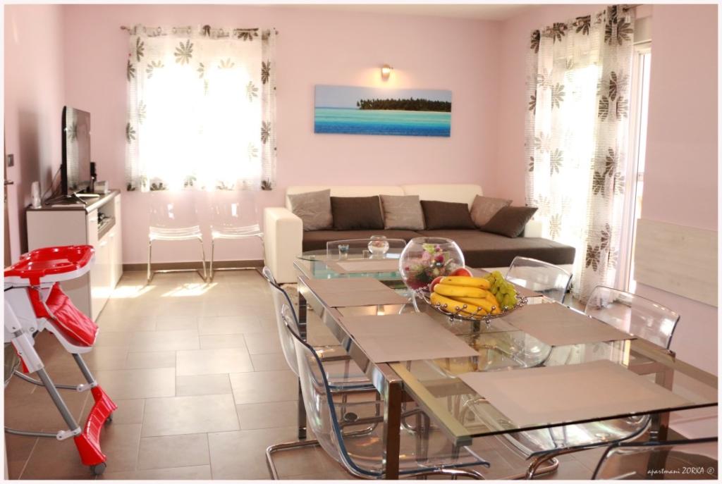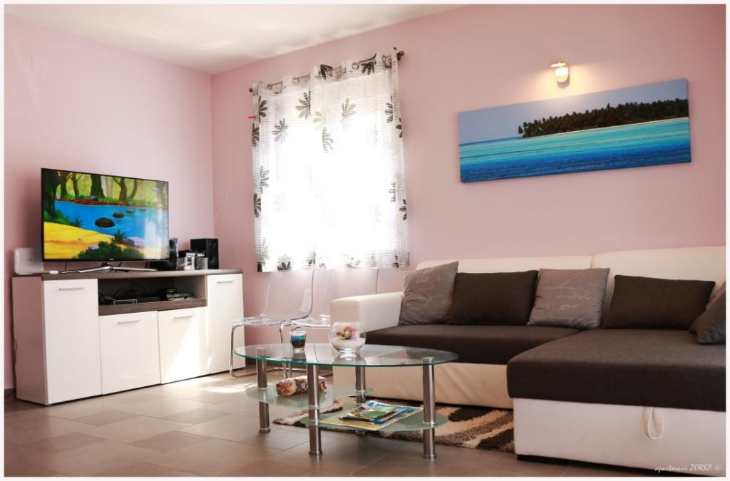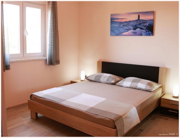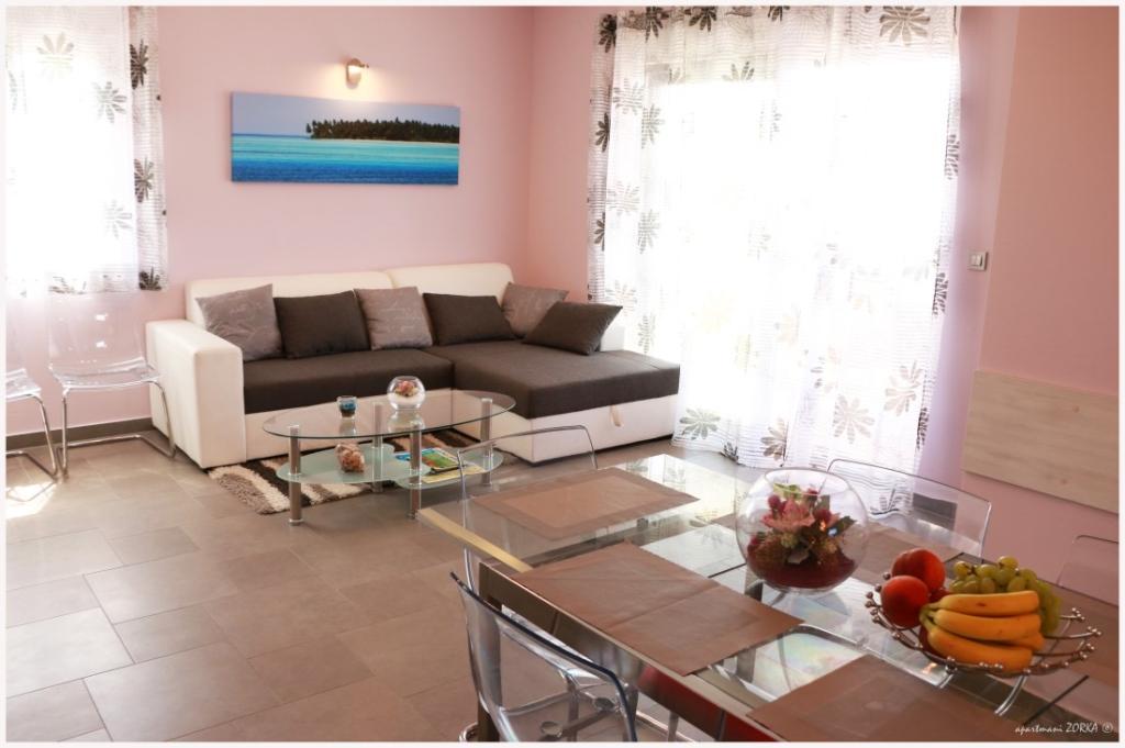 Apartman Zorka nalazi se u mjestu Bilo, 5 km od prekrasnog turističkog mjesta Primošten, 20 km od Šibenika, 35 km od NP Krka i 40 km od NP Kornati Udaljen je samo 100 m od mora gdje se nalaze prekrasne kamene i šljunčane plaže, uvale, te se nalazi uz gustu borovu šumu Apartman je izgrađen 2015. godine i moderno uređen te ima 2 parkirna mjesta. Veličina apartmana je 100m2 12m2 terase s pogledom na more. Više informacija i slika na www. apartmani-zorka. eu