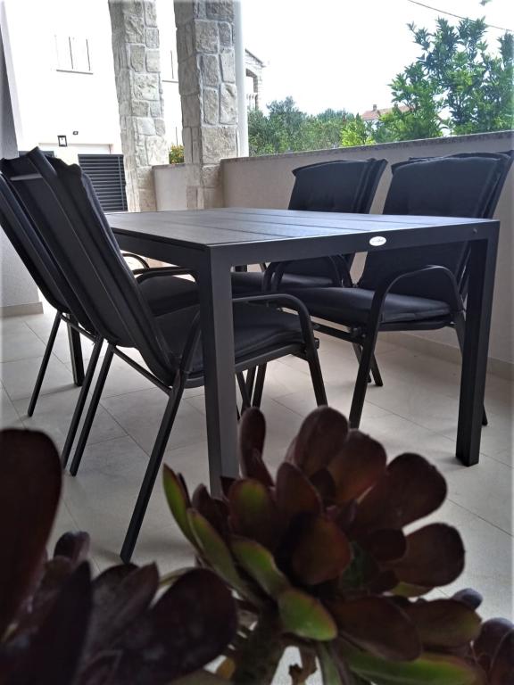 Apartman ALEN (40 m2) smješten je u prizemlju privatne, samostojeće kuće okružene vrtom. Sastoji se iz 1 velike spavaće sobe (20m2) s bračnim krevetom, pomoćnim krevetom i dječjim krevetićem, kuhinje zajedno s dnevnim boravkom u kojem je sofa na razvlačenje 135 x 190 cm, kupaonice s WC-om, te lijepe natkrivene terase 12 m2 ispred apartmana. Potpuno je nov i opremljen sa svime potrebnim za ugodno ljetovanje: klima, WI-FI Internet, SAT-TV, mikrovalna pećnica, kuhalo za vodu, toaster, aparat za kavu, grill. U cijenu je uračunato: posteljina, ručnici, kuhinjski ručnici i krpe (promjena svakih 7 dana), struja, voda, WiFi Internet, te boravišna pristojba. Apartman je udaljen 300 m od prekrasne pješčane plaže i 100 m od samoposluge.