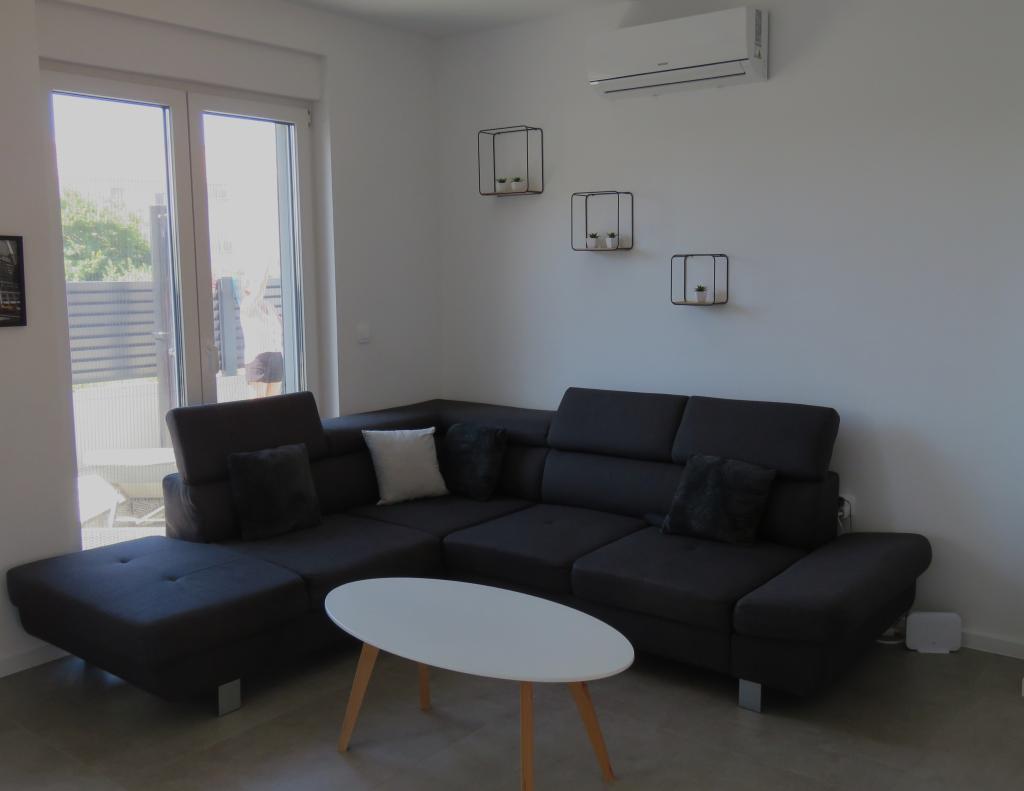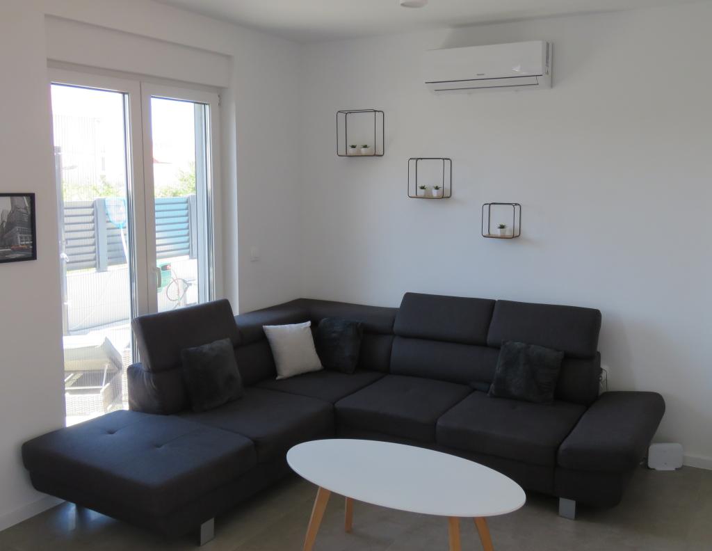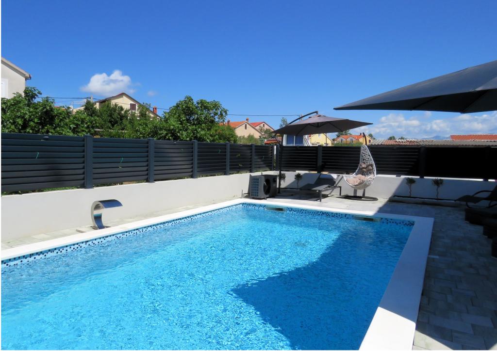 Suvremeni apartman na dvije etaže u zgradi izgrađenoj 2022.godine. Apartman je kompletno nov te ćemo sezone 2024. poželjeti dobrodošlicu prvim gostima! Stan ima 3 spavaće sobe (6 ljudi) 2 kupaone, kuhinju sa prostranim dnevnim boravkom i dvije udobne sofe. Kuhinja je potpuno opremljena, a prostrana terasa u prizemlju gdje se gosti mogu opustiti u privatnom grijanom bazenu, koristiti grill, ili se jednostavno odmarati na vanjskim sofama i ležaljkama... Osiguran je parking ispred zgrade, a svaka soba ima klimu i TV. Udaljenost od plaže je 200 metara. U blizini se nalaze trgovine, restorani i beach barovi, a u izboru plaže možete birati između uređenih plaža sa svim sadržajima, ili divljih plaža u borovoj šumi za one koji preferiraju bijeg od gužve i žele privatnost čak i u visokoj sezoni. Ni 5 kilometara od apartmana nalazi se jedna od najpoznatijih plaža u cijeloj Hrvatskoj, a to je Kraljičina plaža u Ninu, do koje Vam je potrebno tek par minuta automobilom.