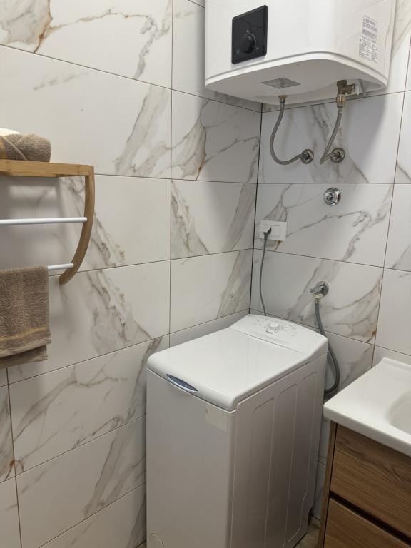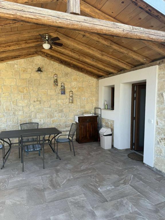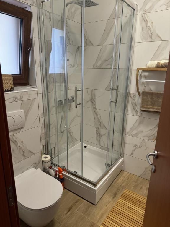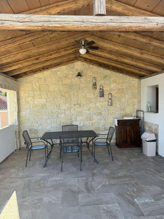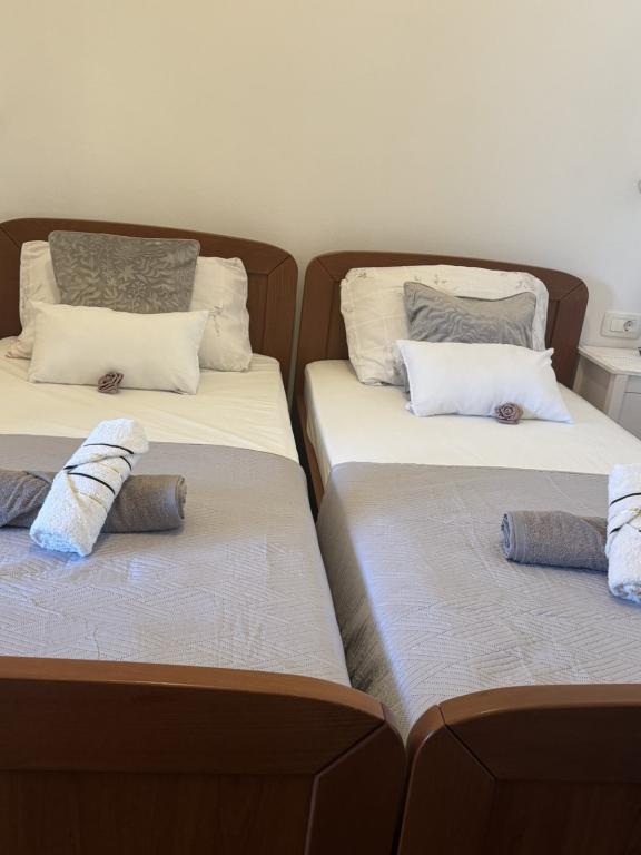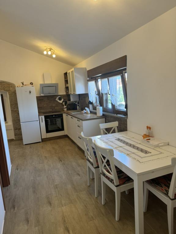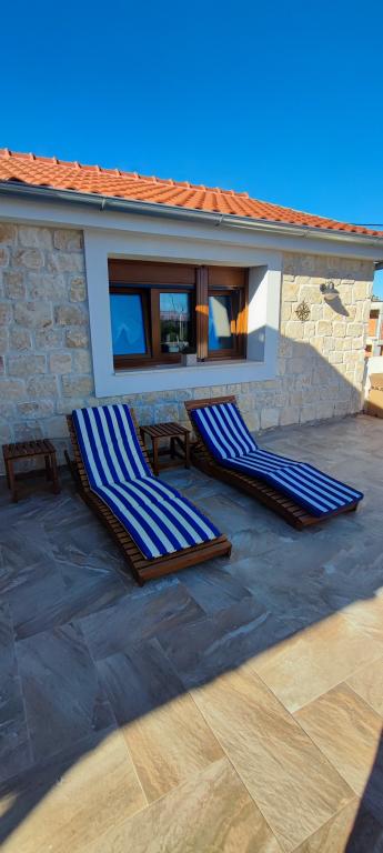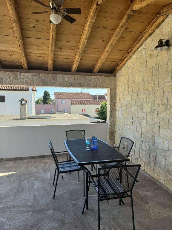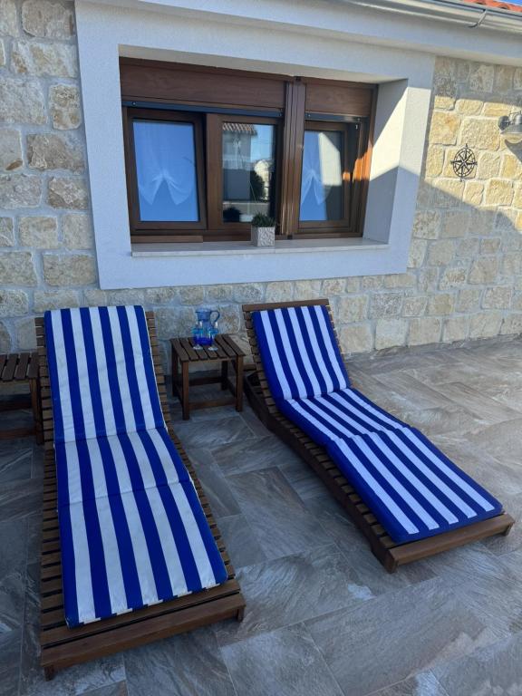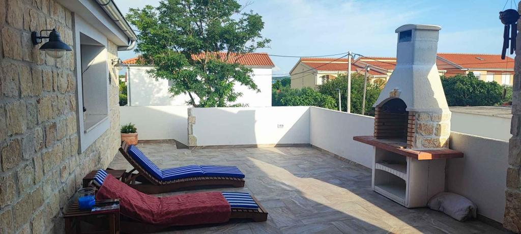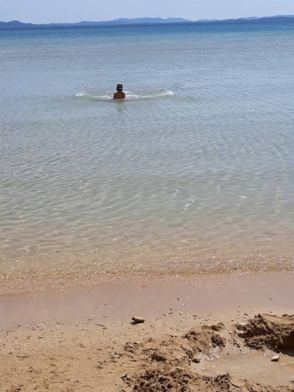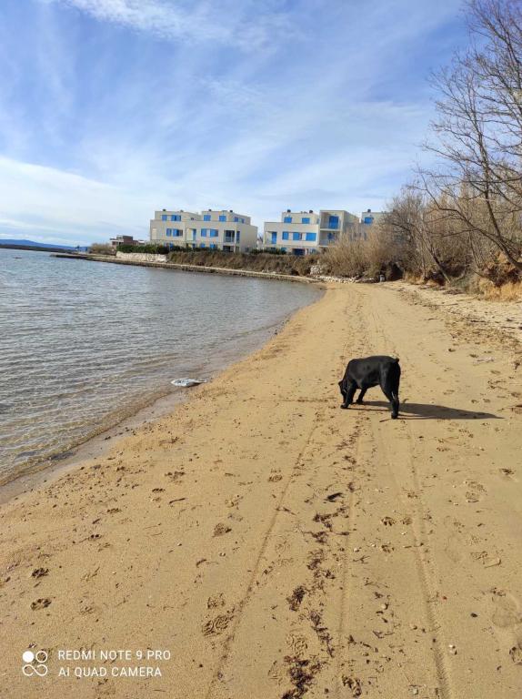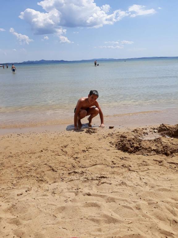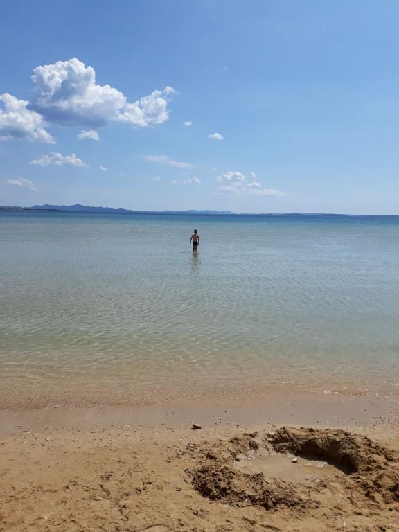 Novo uređen dvosobni apartman u rustikalnom stilu sa kuhinjom, dnevnim boravkom i kupaonom. Jedna soba ima krevet 160x200 a druga soba dva kreveta 90x200 i dnevnom boravku nalazi se pomoćni ležaj (kauč na razvlačenje). Obje sobe , kuhinja i dnevni boravak su klimatizirani. U svakoj prostoriji nalazi se televizor. U kupaoni se nalazi tuš kada i perilica rublja. Apartman se nalazi na 1. katu ispred kojeg se cijelom dužinom proteže terasa od 50 m2 dijelom natkrivena. Na terasi je roštilj, ležaljke, stol i stolice,... Na ulazu u objekt u prizemlju je terasa cca 30 m2 sa vanjskim solarnim tušem.. Apartman posjeduje i tri parkirna mjesta ispred samog ulaza. Okolne plaže su pjeskovite i plitke pogodne za malu djecu i neplivače ili možete uživati na intimnijim kamenitim ili betonskim kupalištima duž cijele šetnice. Na spomenutoj šetnici nalazi se mjesto gdje možete promatrati, uživati i fotografirati jedinstveni prizor zalaska sunca u more. U blizini su brojne pješačke i biciklističke staze, beach barovi, najmovi brodica i ostalog, povijesni gradić Nin sa poznatim ninskim ljekovitim blatom udaljeno cca 3 km, TN Zaton sa brojnim turističkim sadržajima udaljen cca 3 km, Zadar je udaljen 25 km