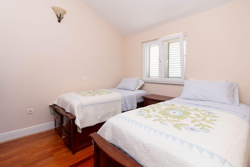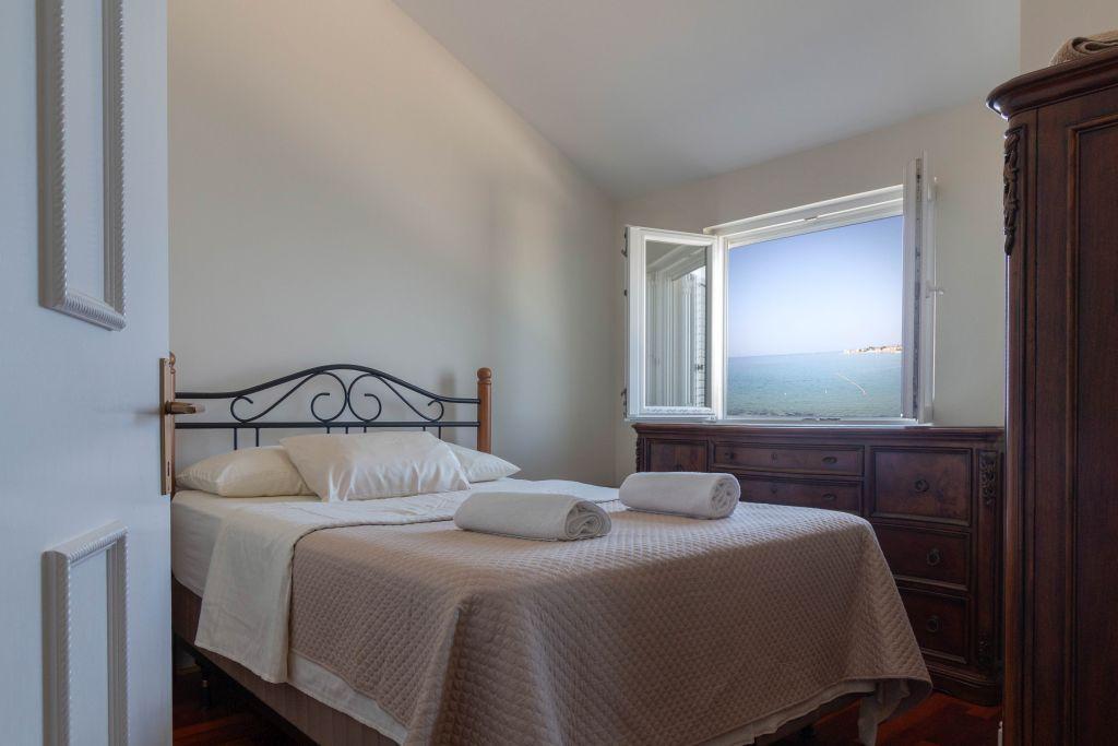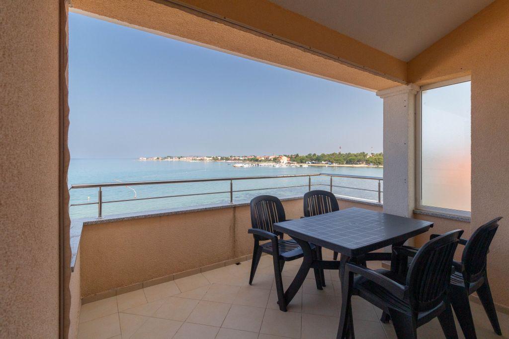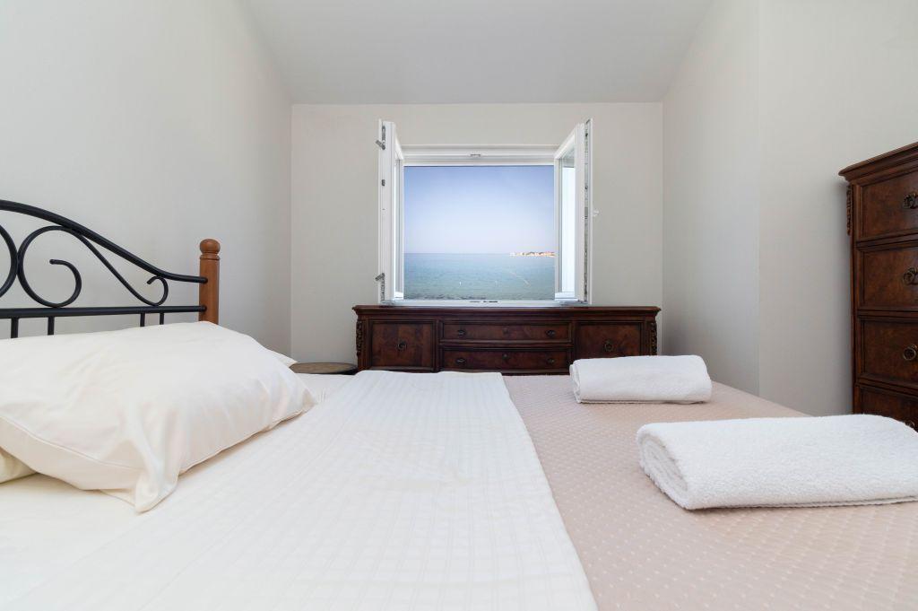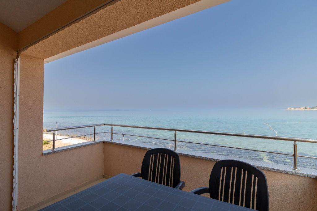 An apartment located right by the sea in the town of Privlaka – ideal for a perfect holiday with a breathtaking view! The apartment can accommodate up to 5 people (4 + 1), making it a great choice for families or small groups. The apartment is situated in a quiet part of Privlaka, just 3 km from the historic town of Nin and 25 km from the city of Zadar. It’s the perfect base for exploring the Zadar region and its many natural and cultural attractions. The apartment consists of two comfortable bedrooms with double beds and air conditioning, a modern bathroom, a fully equipped kitchen, and a spacious living room. A special highlight is the covered balcony with outdoor furniture and a direct sea view – perfect for morning coffee or evening relaxation.