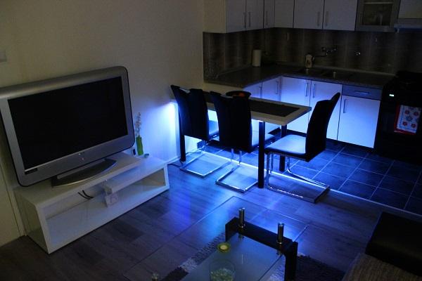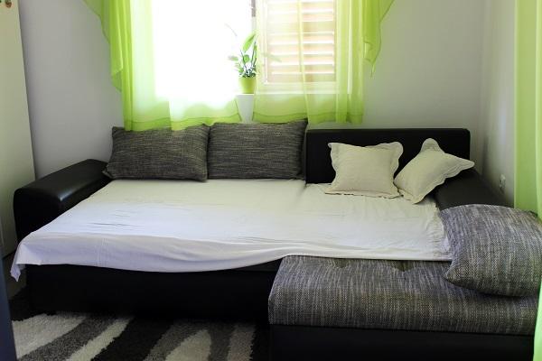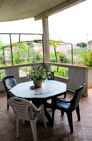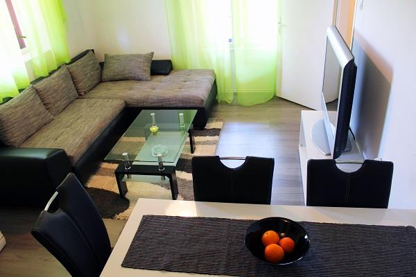 Suvremeno i kompletno opremljen apartman smješten je u prizemlju obiteljske kuće te svega 60 m udaljen od pješčane plaže. Apartman se nalazi u neposrednoj blizini samog centra mjesta, restorana, sportskih terena, marketa, bankomata, ljekarne, pošte i dječjeg lunaparka. Apartman ima poseban ulaz, prostrano dvorište i terasu te je idealan za obitelj zbog mirnog dijela mjesta, ali i za mlade zbog blizine zabavnih sadržaja. Tokom cijelog boravka vlasnici apartmana su na raspolaganju.
