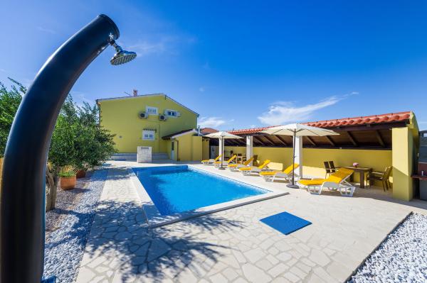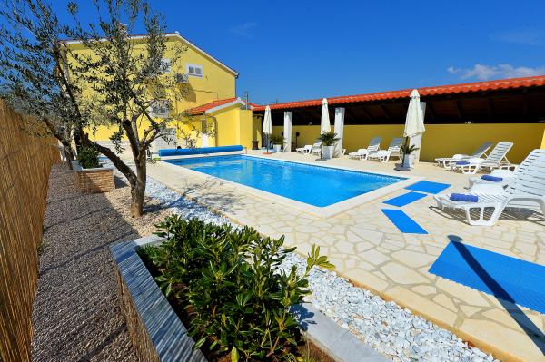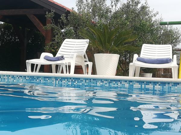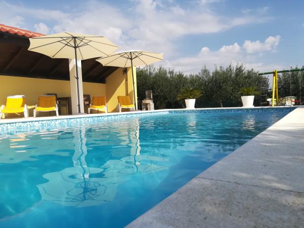 Novouređeni apartmani s novim bazenom u Privlaci te pogledom na more. Blizina plaže i centra. Bazen je površine 8x4 metara uz ležaljke, sprave za fitnes, dječji sadržaji (trampolin, ljuljačke uz bazen), stolni nogomet i uključena glazba uz bazen po želji gosta. Drvena novoizgrađena sjenica (pergola) uz bazen za dodatni odmor. Ista je kvadratura apartmana oznake 1 i 2. Oba apartmana imaju kvalitetan dodatni ležaj. Kućni ljubimci dozvoljeni. Mogućnost iznajmljivanja oba apartmana istovremeno za 8 osoba ili dva odrasla bračna para s djecom. Apartments with pool, have a seasonal outdoor swimming pool, garden, a fitness centre, table soccer and shared lounge in Privlaka. The accommodation features a shared kitchen and free WiFi. At the guest house the rooms have air conditioning, a seating area, a flat-screen TV with satellite channels, a kitchen, a dining area and a private bathroom with a hair dryer and a shower. All rooms will provide guests with a wardrobe and a kettle. Simoni