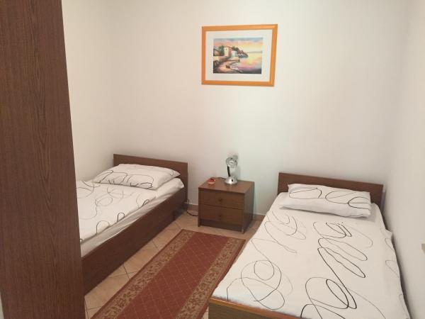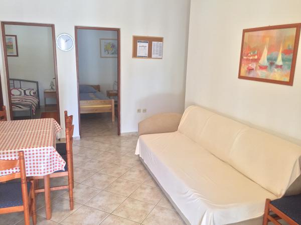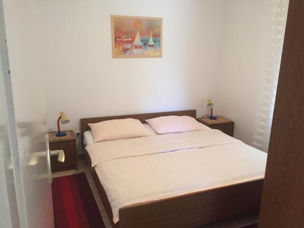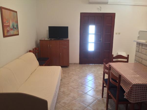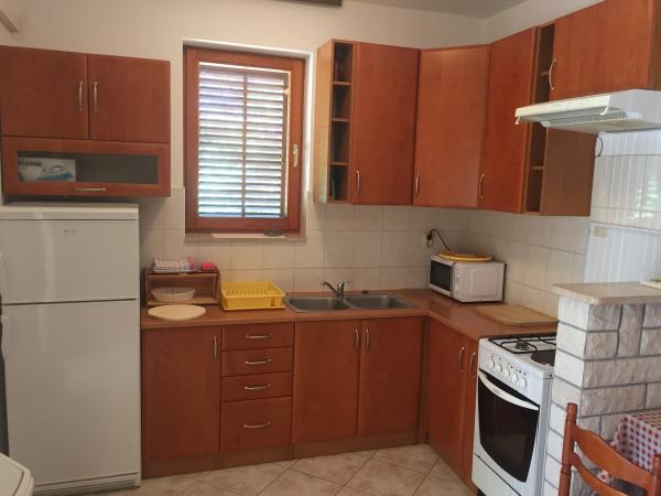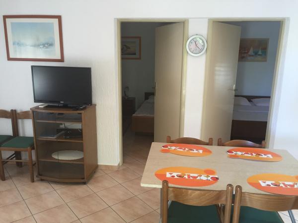 Rezervirali smo apartman br.2. Čist i čist stan, sa svime što vam je potrebno. Čak imaju i vlastito parkiralište koje nam je bilo vrlo važno, a plaža je 30 metara daleko apsolutno fantastična. U dvorištu, vlasnik ima malu gulaš s rakijom koja je sjajna. Idealno za obitelji s malom djecom.